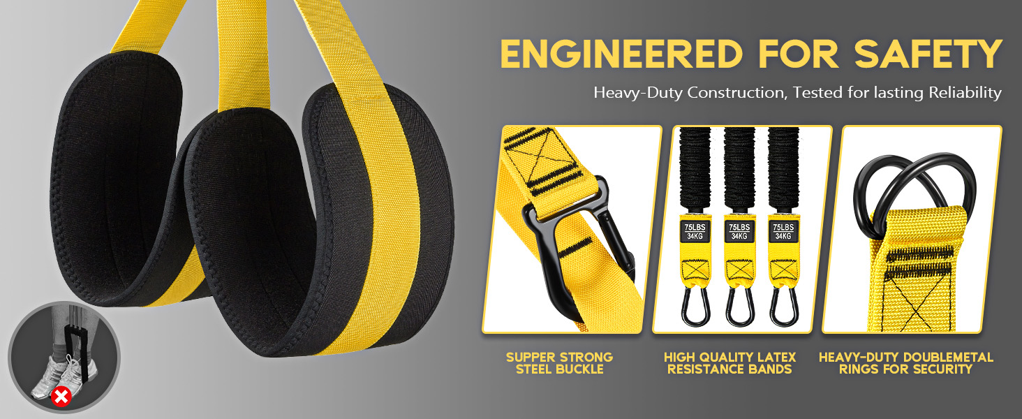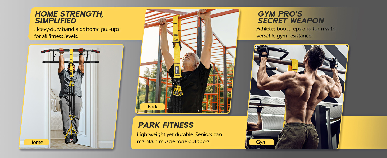 This isn’t just a pull-up assist band — it’s a full upper-body training system. With 3 resistance levels, adjustable straps, and padded sling hangings, you can tailor every workout to your strength level and goals. From assisted pull-ups to targeted back, chest, and core exercises, it evolves as you do — making plateaus a thing of the past.