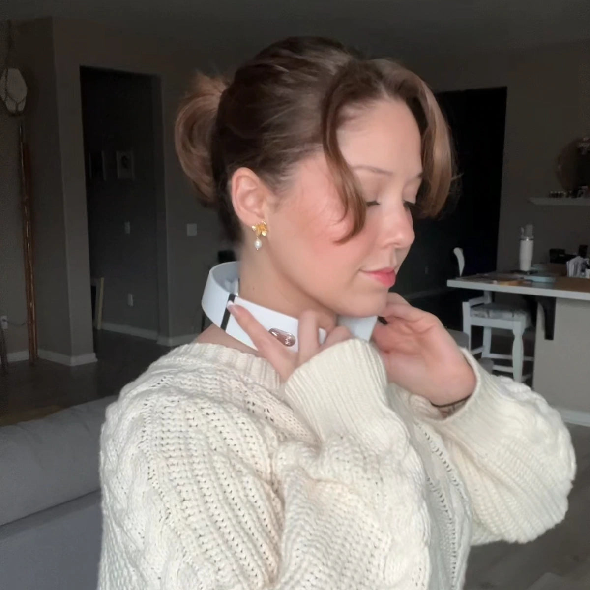 Lightly wet your neck with some water or our gel* for the best effect possible.