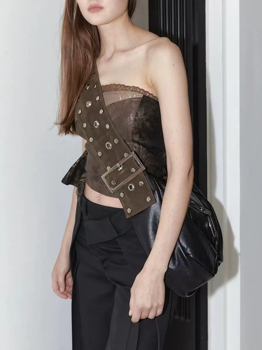 Designed with a distinctive vintage moto style, this messenger bag features metal rivet details, a spacious interior, and a comfortable shoulder strap. It's an ideal choice for women who love to mix edgy fashion with everyday wearability. From concerts to casual outings, this bag is the perfect accessory to elevate any look, allowing you to express your individuality while enjoying the practical benefits of ample storage space.