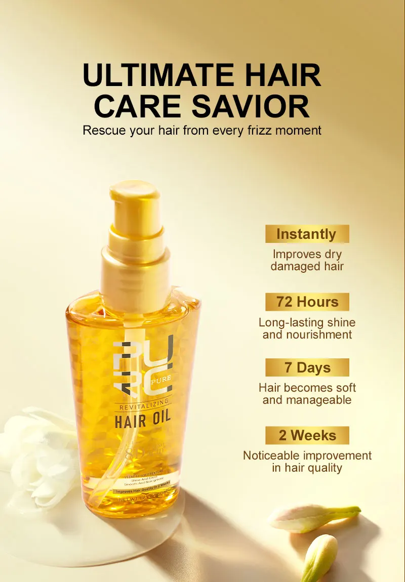 The PURC Morocco Argan Oil Nourishing Hair Oil is a game-changing hair care product designed to smooth, hydrate, and repair dry, frizzy hair. With keratin, natural oils, and vitamins, it gives your hair the care it deserves. Whether you're looking to achieve a frizz-free finish, restore damage, or simply hydrate your hair, this hair serum is the perfect solution for healthy, shiny hair.