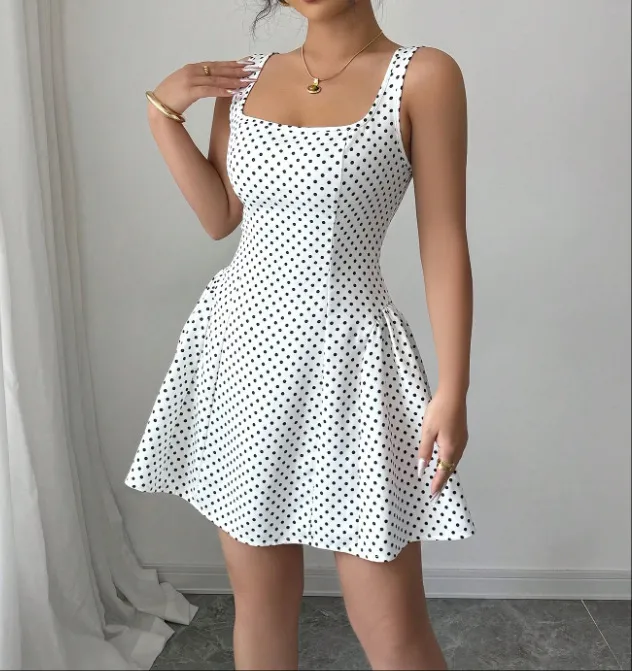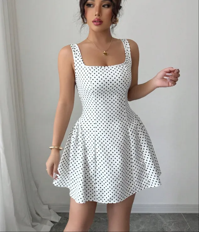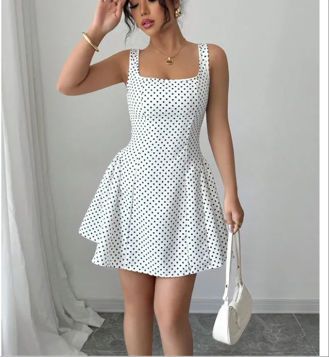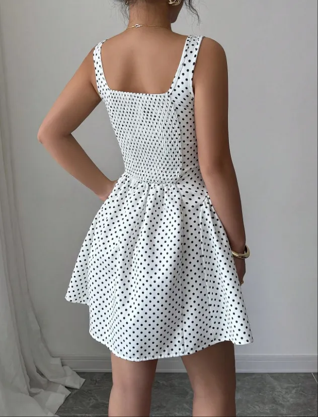 Step into timeless style with the Pure Desire Wind Lace-up Waist Polka Dot Vest Dress, a perfect blend of classic charm and modern design tailored for women across New Zealand. This dress features a playful polka dot pattern that never goes out of fashion, making it an ideal choice for both casual outings and semi-formal occasions.