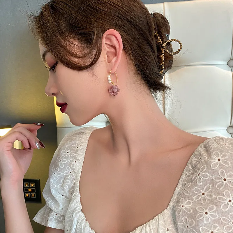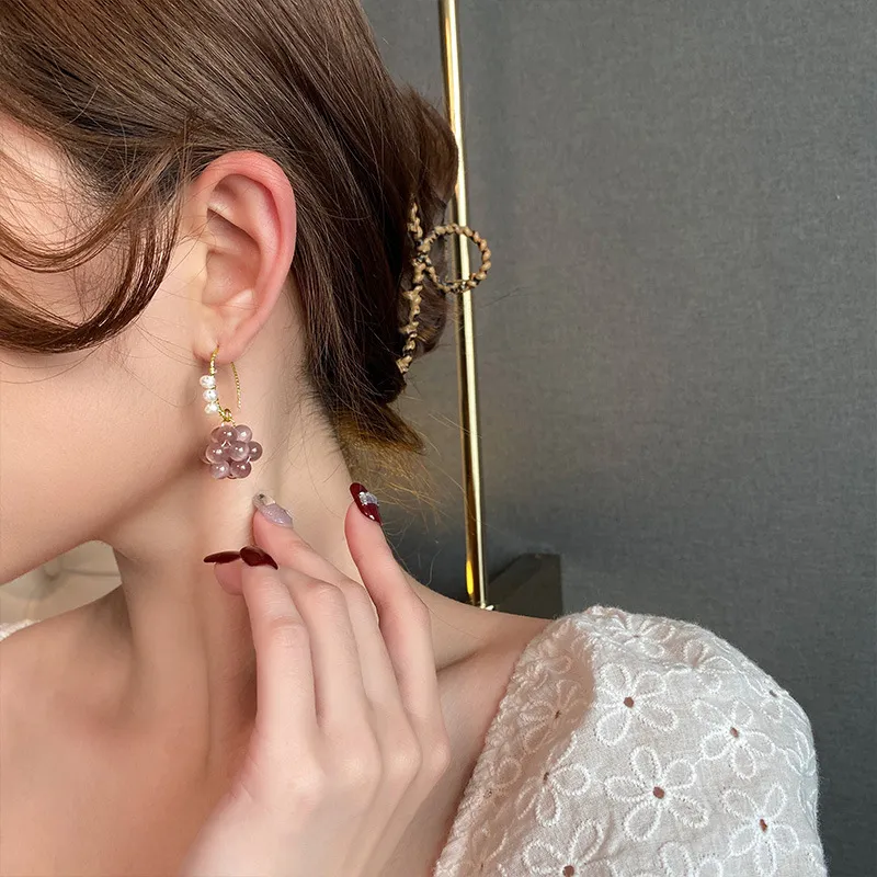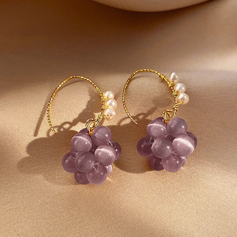 Purple Sweet Grape Ball Ear Hook Fashion Design Earrings