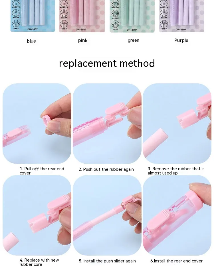 Push Type Traceless Children's Automatic Eraser – Effortless, Clean, and Fun Erasing