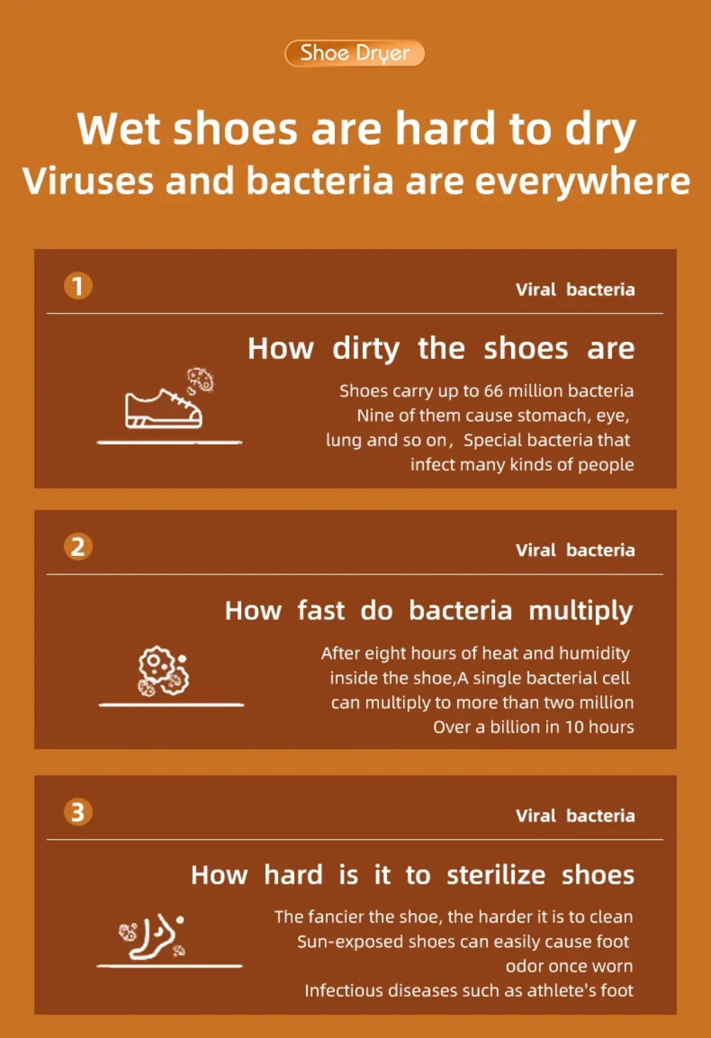 (3The product is equipped with a temperature protection device. To ensure safe use, the product will automatically shut down after a period of use to avoid excessive temperature. After the temperature drops, it will continue to be heated and dried. Please place the shoes to be dried on the product before starting it, otherwise it will quickly heat up and power off.