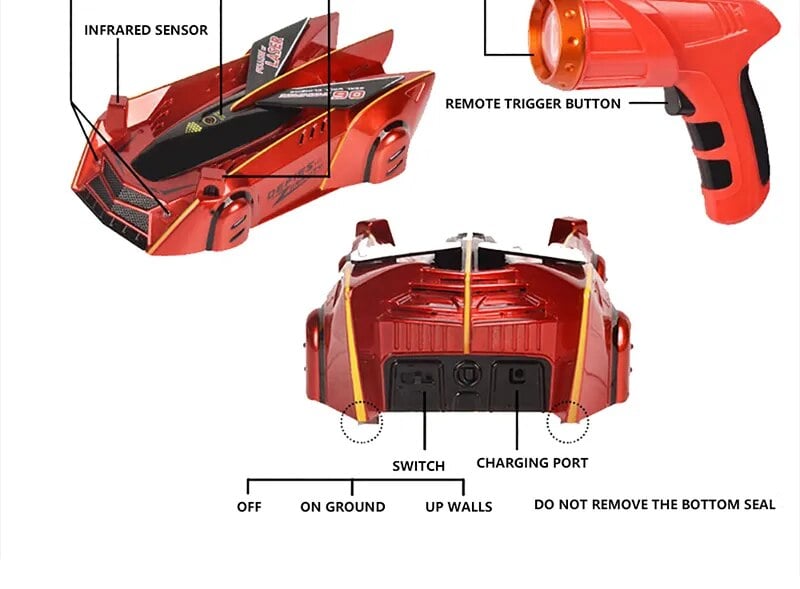 the light in any direction!This lightweight, wall climbing vehicle is fun and easy to control for any racer! With multi-direction control,