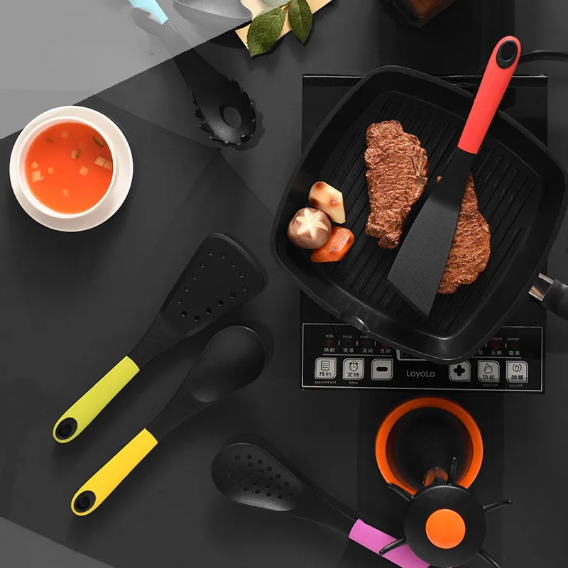 Versatile and Practical: The Rainbow Nylon Kitchenware 7-Piece Set is perfect for all your cooking needs.