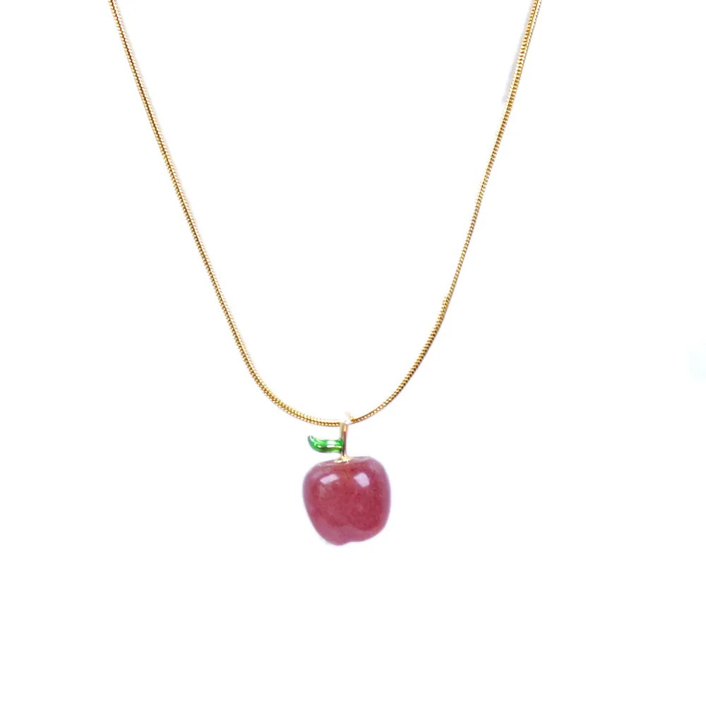 Article No.: Strawberry Crystal Apple Pendant (gold chain)