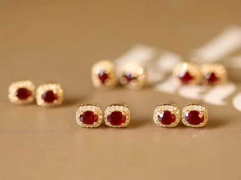 How to Style the Real Gold Natural Ruby Diamond Stud Earrings