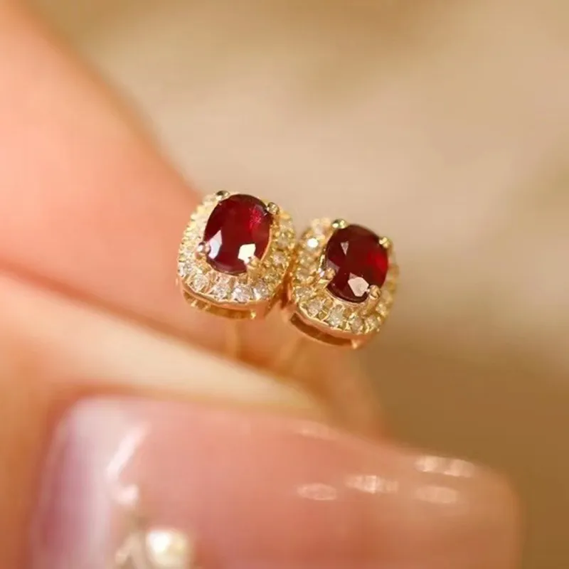 Color: 18K real gold diamond Ruby stud earrings