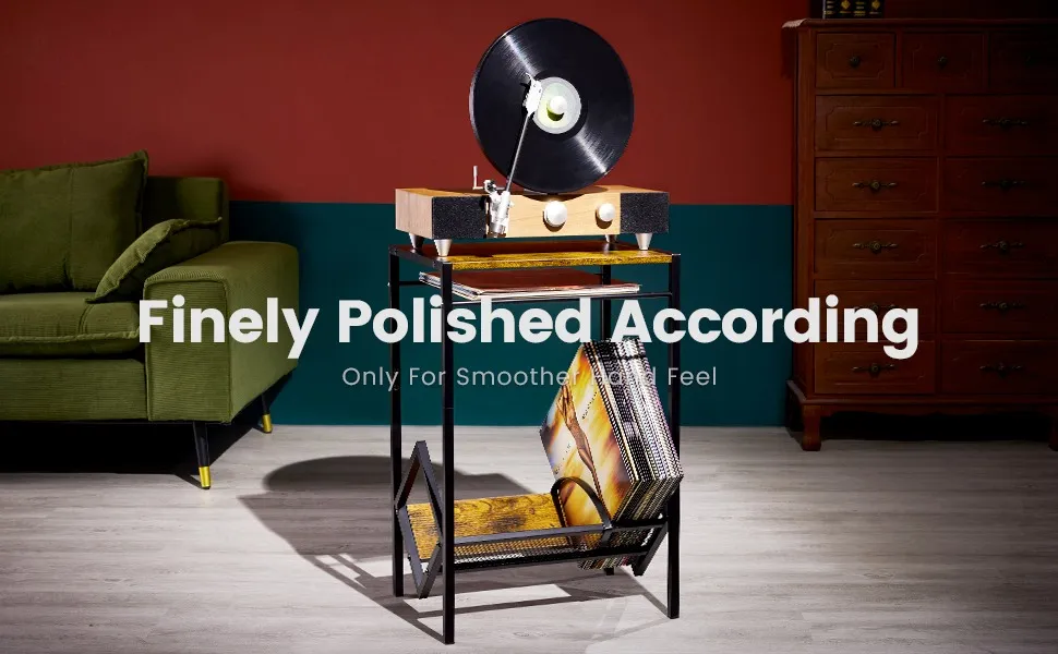 Crafted from high-quality materials, the Record Player Stand is designed to support your turntable and vinyl collection safely. It provides a solid, stable platform for your turntable to ensure optimal sound quality. The stand's robust construction ensures that your equipment stays secure and undisturbed, even during use.