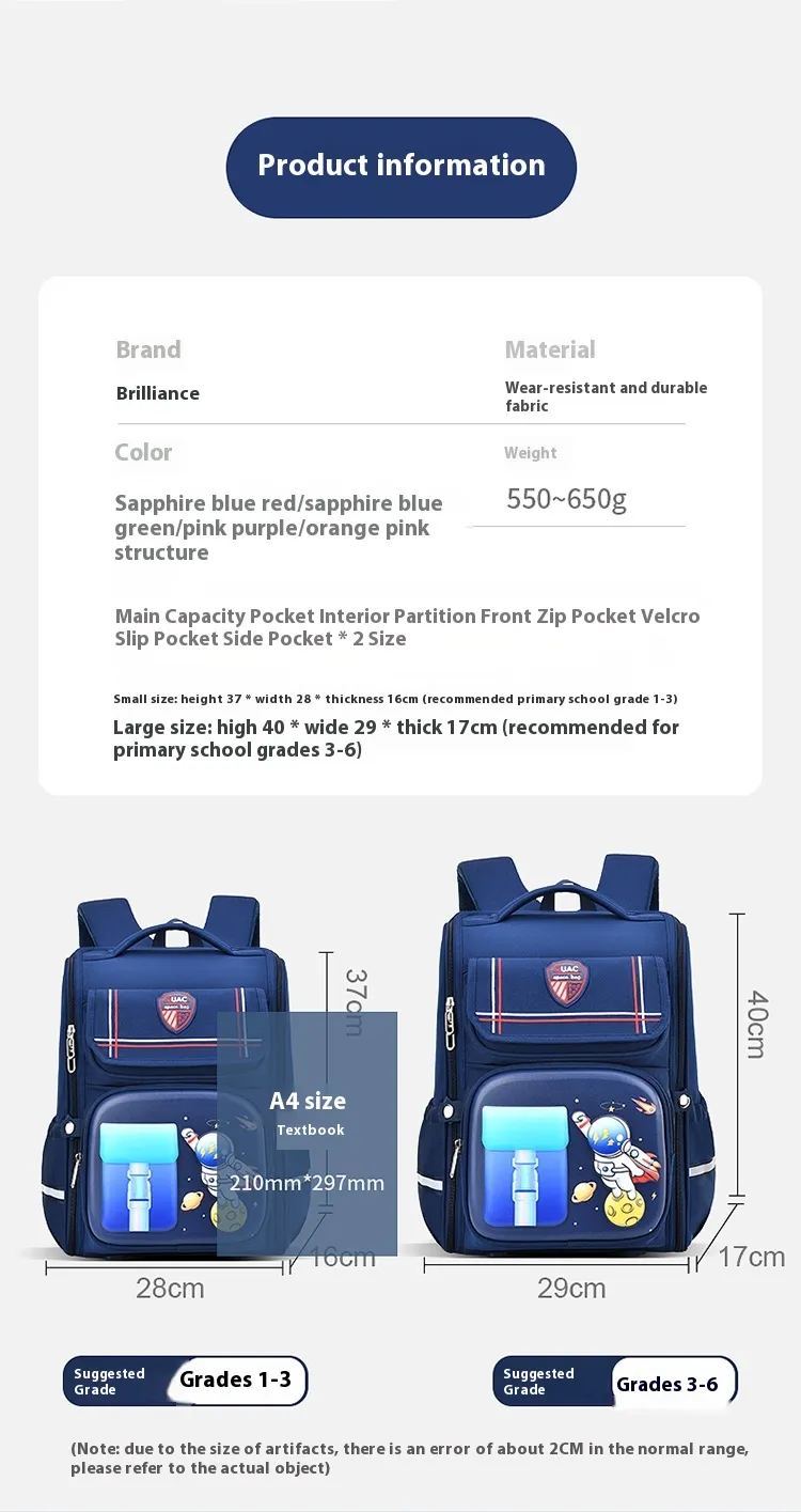 The Reduce Burden And Protect Spine Children's Large Capacity Cartoon Backpack is specially designed to provide comfort, support, and ample space for children to carry their school essentials while safeguarding their spine and posture. Featuring a fun and colorful cartoon design, this backpack is not only practical but also a playful accessory that children will love. With its large capacity, it easily accommodates books, stationery, lunch boxes, and other school necessities, making it the perfect companion for school days, field trips, and outings.