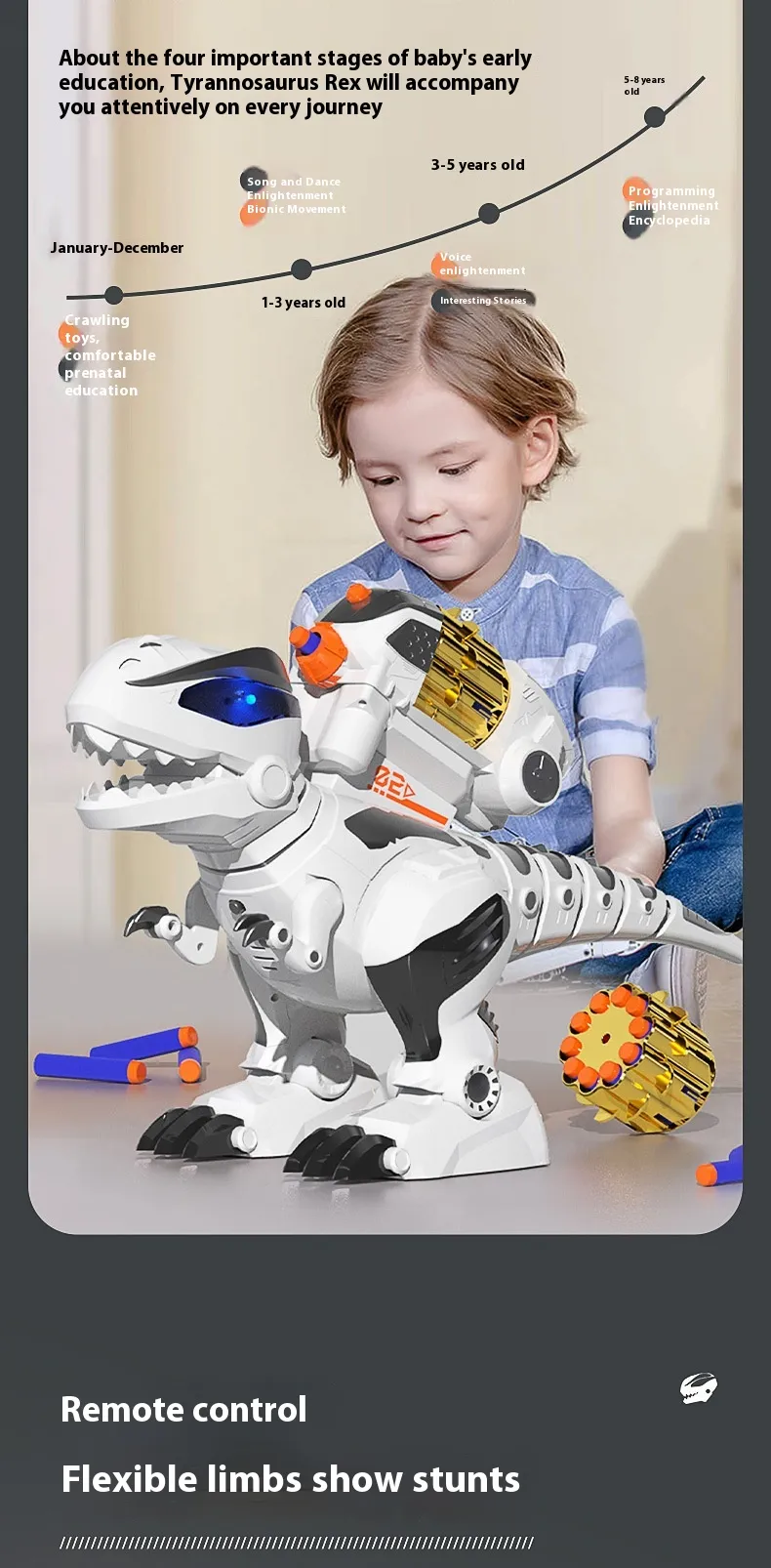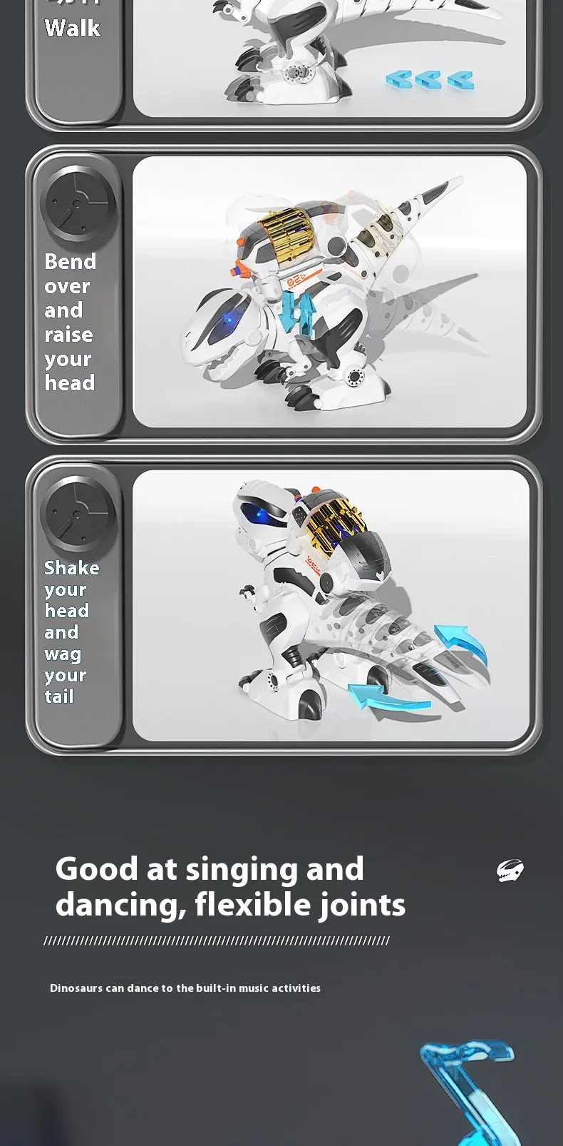 - Easy-to-use Remote Control: The intuitive remote control enables kids to move, turn, and control the dinosaur with ease.