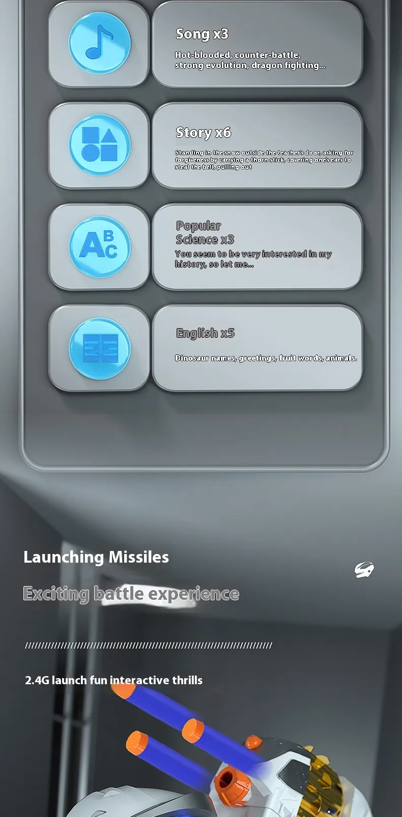 - Soft Bomb Launching Action: Equipped with a safe, soft bomb launcher that adds an exciting element to playtime without posing any harm.