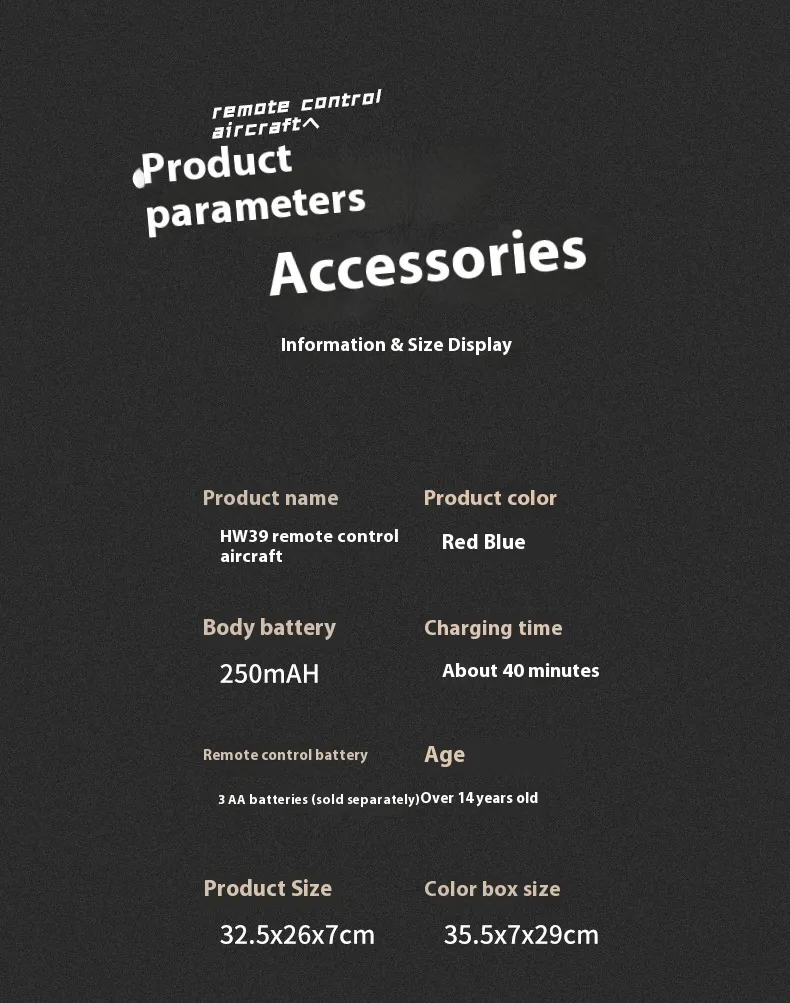 Features: remote control aircraft, drop-resistant and wear-resistant