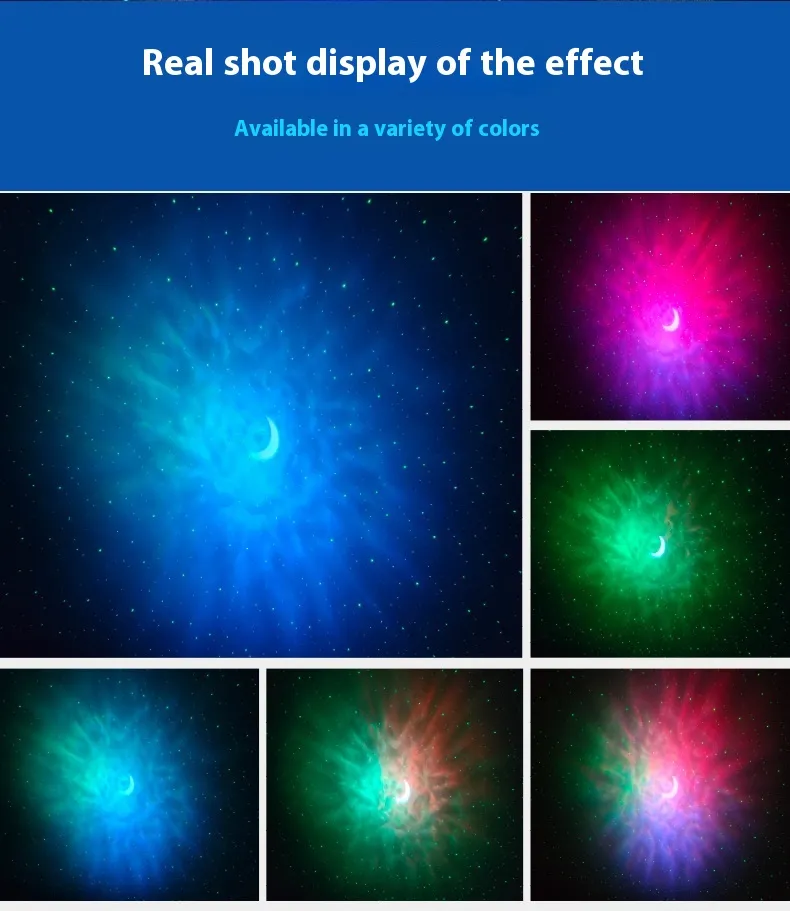 This nebula projector offers a variety of lighting modes and color options, allowing you to customize your light show to suit your mood or the occasion. Choose from a range of colors and lighting effects, including: