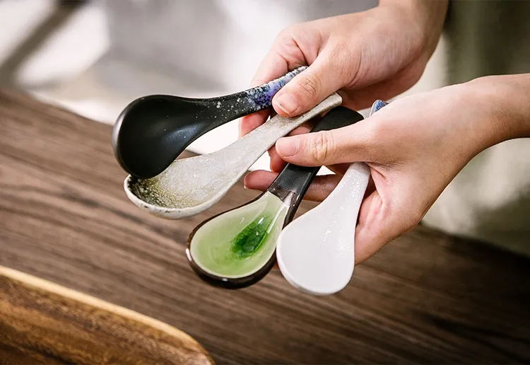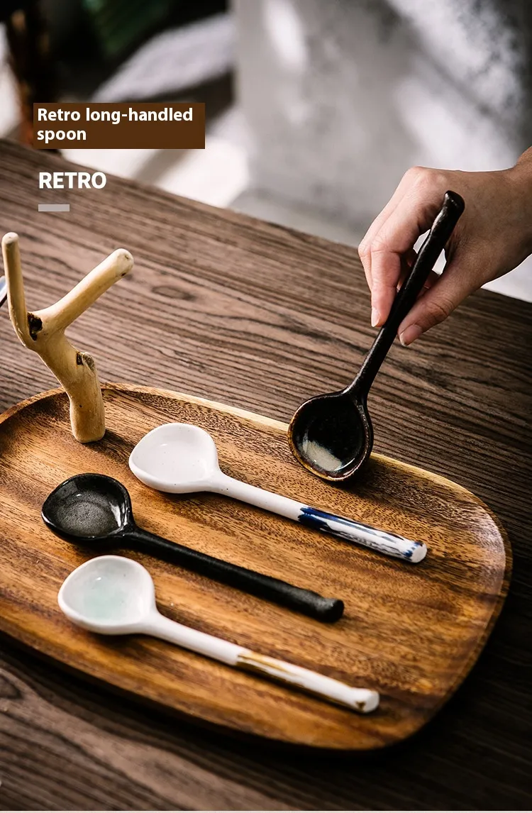 Restaurant Home Kitchen Utensils Creative Retro Ceramic Long Handle Spoon