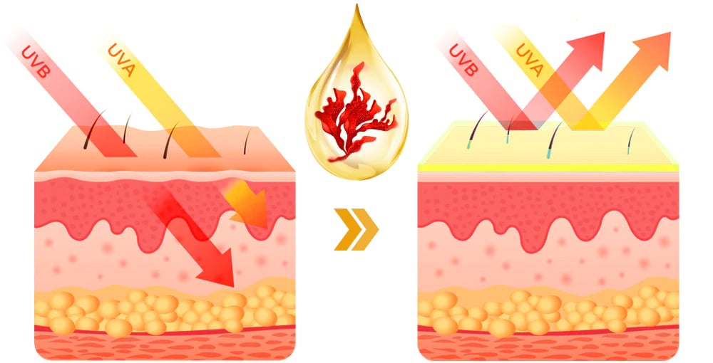 Astaxanthin - It has been shown to have numerous benefits for the skin, including reducing inflammation, protecting against oxidative stress, and improving skin elasticity. When applied topically astaxanthin can help to promote a more youthful and radiant complexion by minimizing the appearance of fine lines and wrinkles, improving skin texture and tone, and protecting the skin from damage caused by UV radiation and other environmental factors.