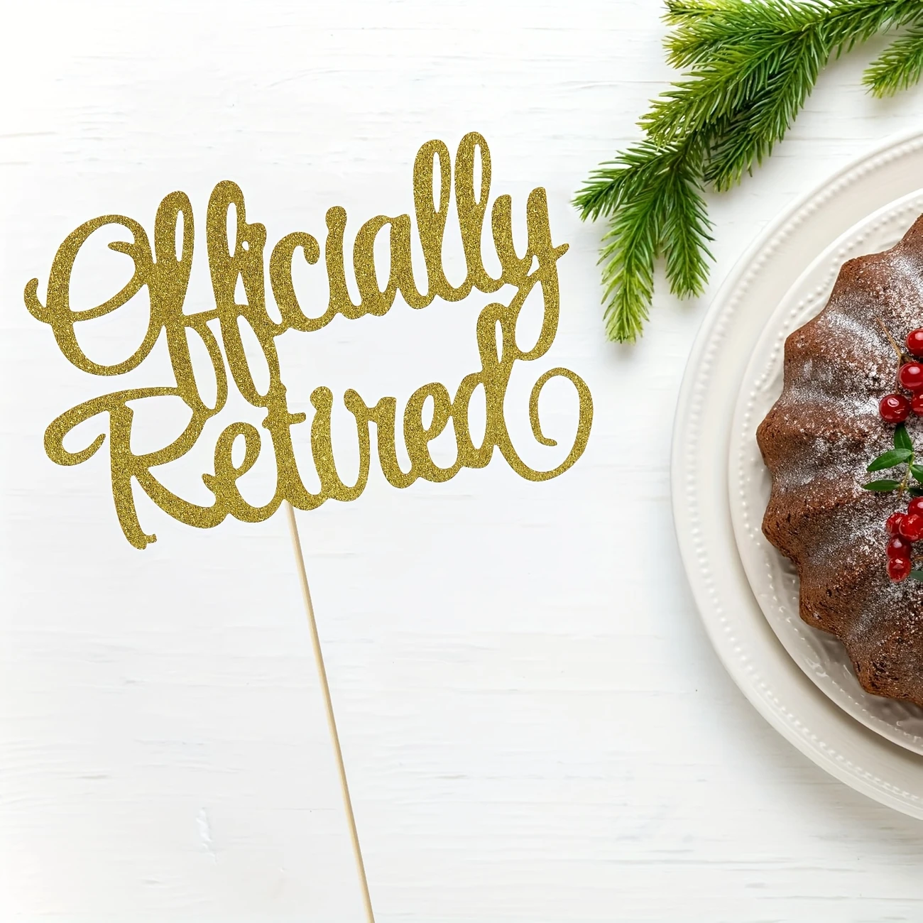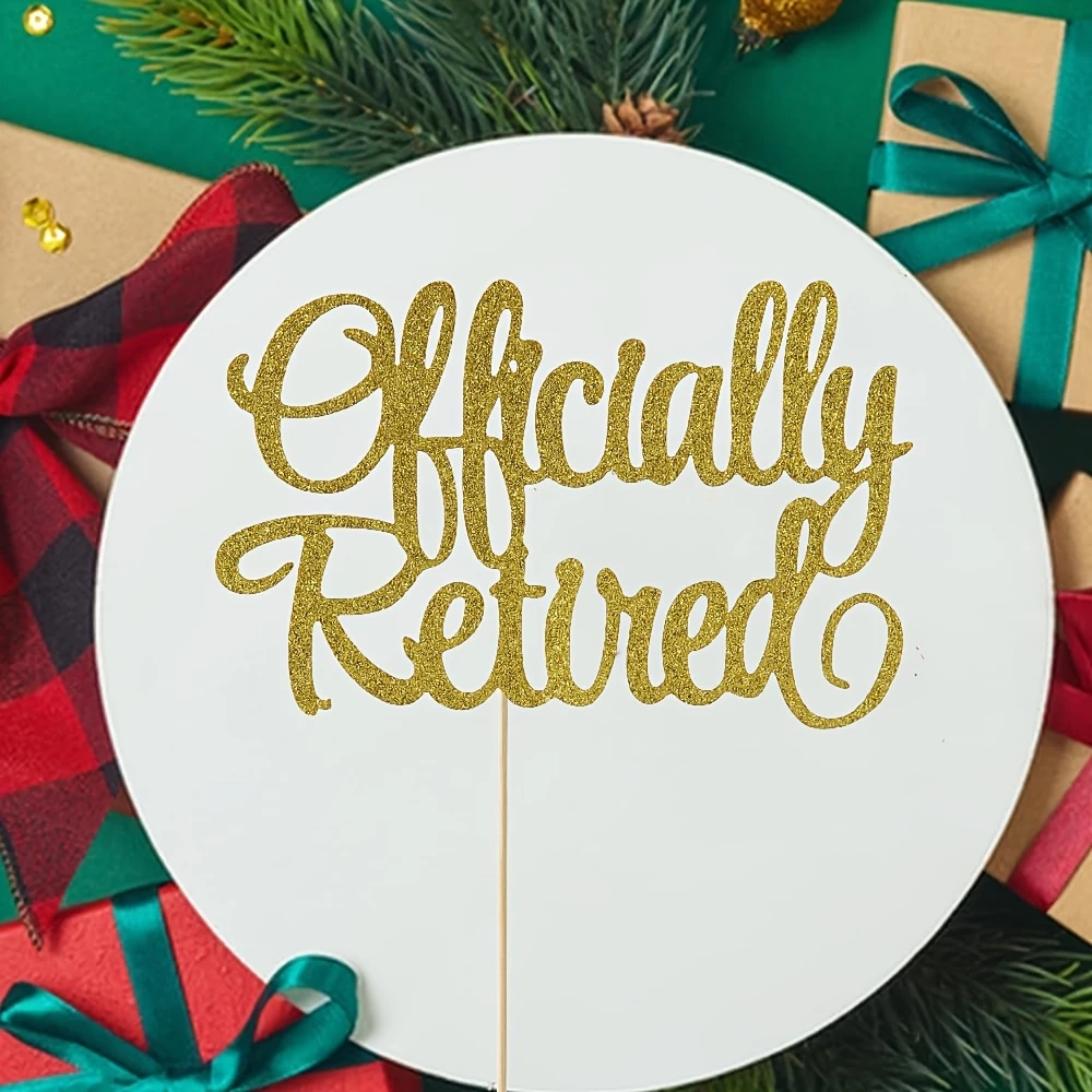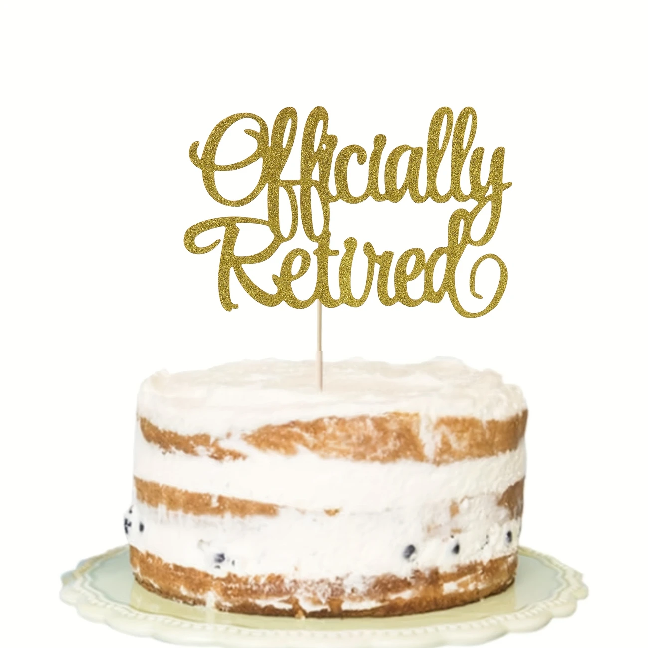 One piece of a gold glitter cake topper for retirement celebrations, perfect for decorating cakes. It features a message about being retired and indicates a no work zone, suitable for both men and women. Ideal for retirement parties and photo booth props.Avoid placing the beautiful cake topper hat in the microwave or oven, as it is intended for decorative purposes. This is the ideal cake decoration for themed parties and can enhance any celebration's cake. It is suitable for cakes, ice cream, and overall party decor, contributing to a festive atmosphere and making birthday celebrations more special. The cake top hat is securely packaged in cardboard for protection; please reach out to us promptly if it sustains any damage during shipping.