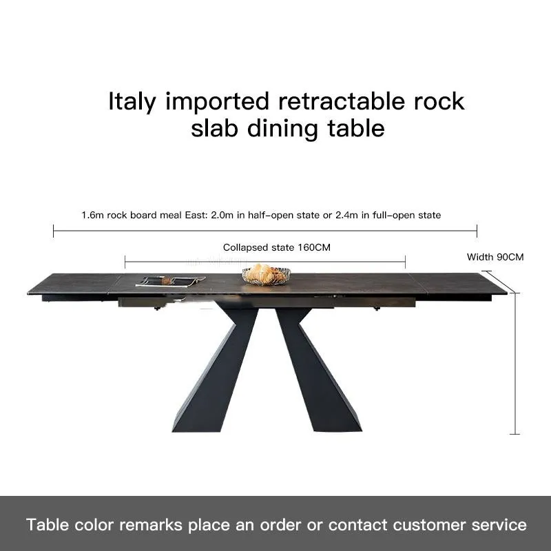 In conclusion, the Retractable Slate Dining Table offers a perfect combination of modern minimalist design and functional features. The retractable and rotating design makes it versatile for any occasion, while the sleek slate finish adds a touch of elegance to your home. Perfect for both small and large gatherings, this table is a must-have for anyone looking to optimize their dining area without compromising on style or space.