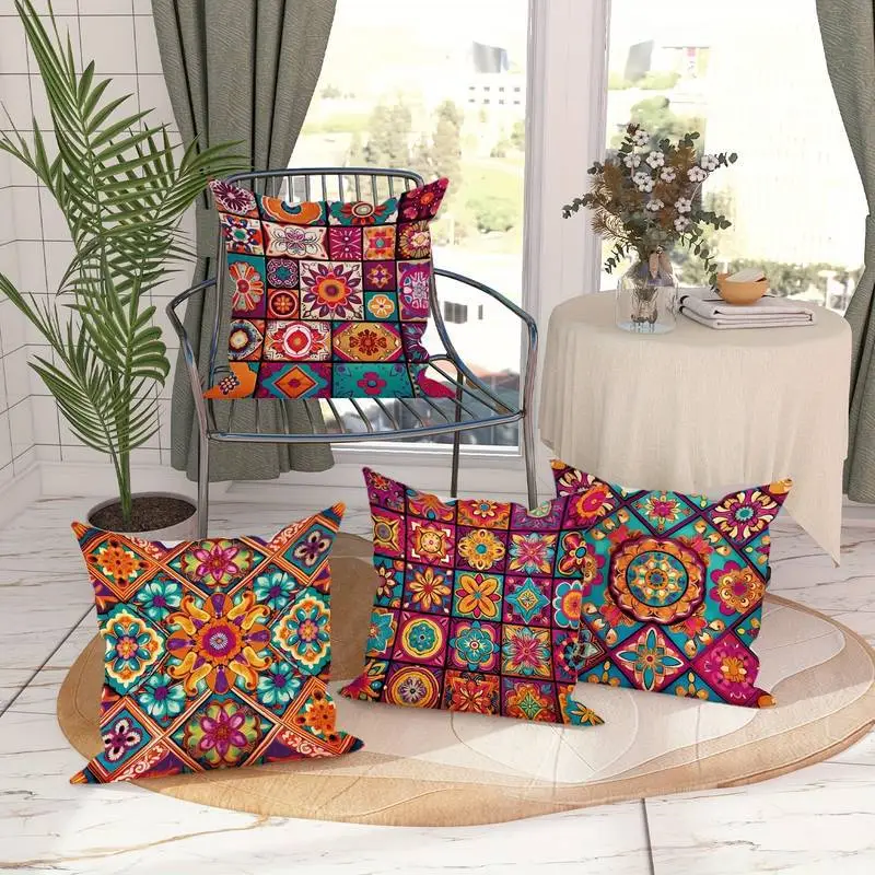 Retro Bohemian Style Pillow Cover Linen Printed Home Ornament Pillow