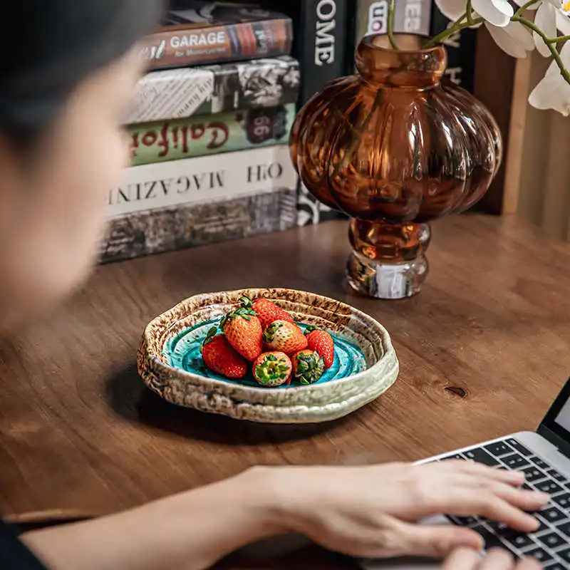 Retro Ceramic 7-inch Ice Crack Shaped Salad Dish