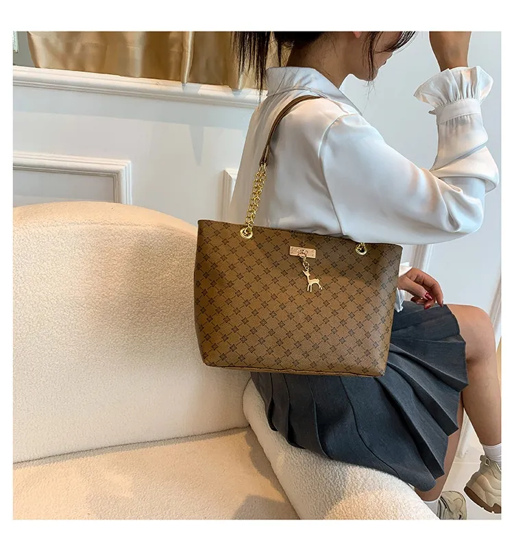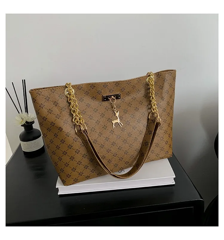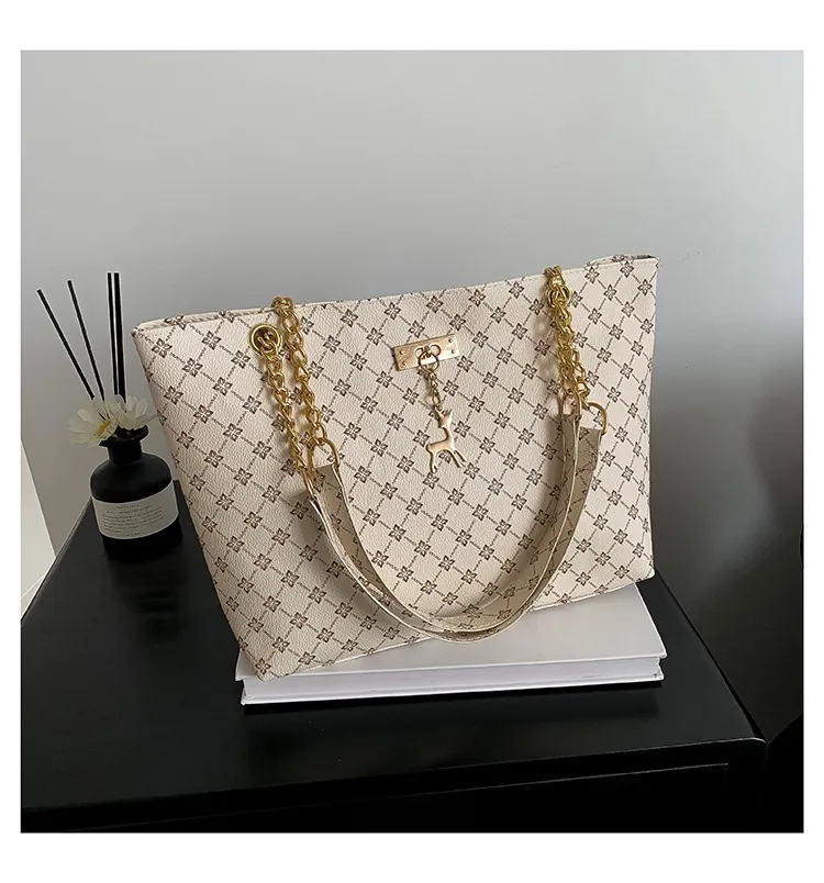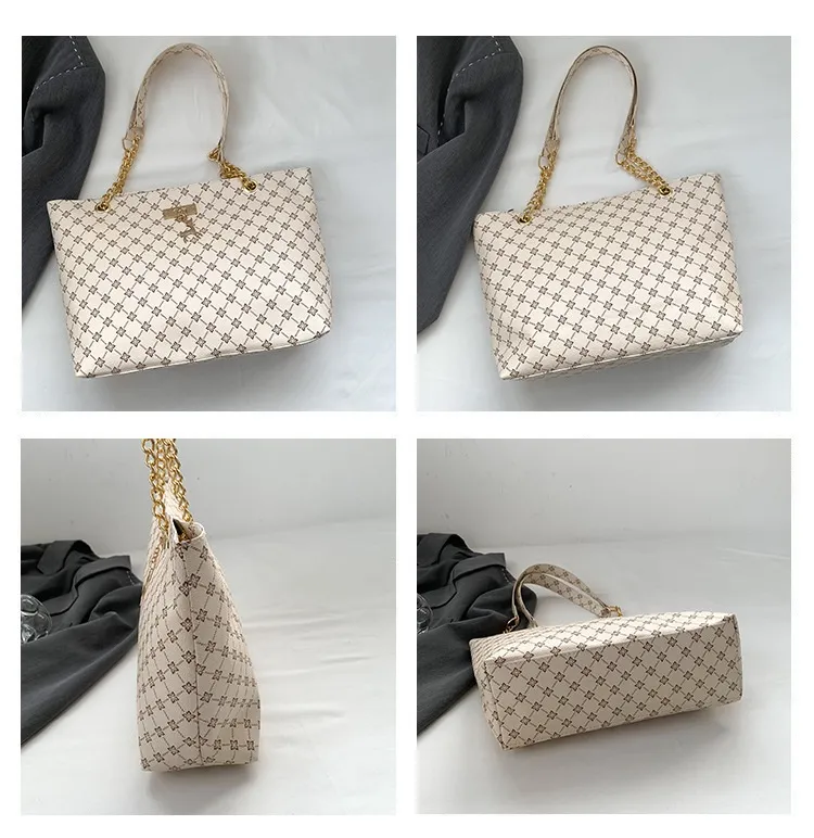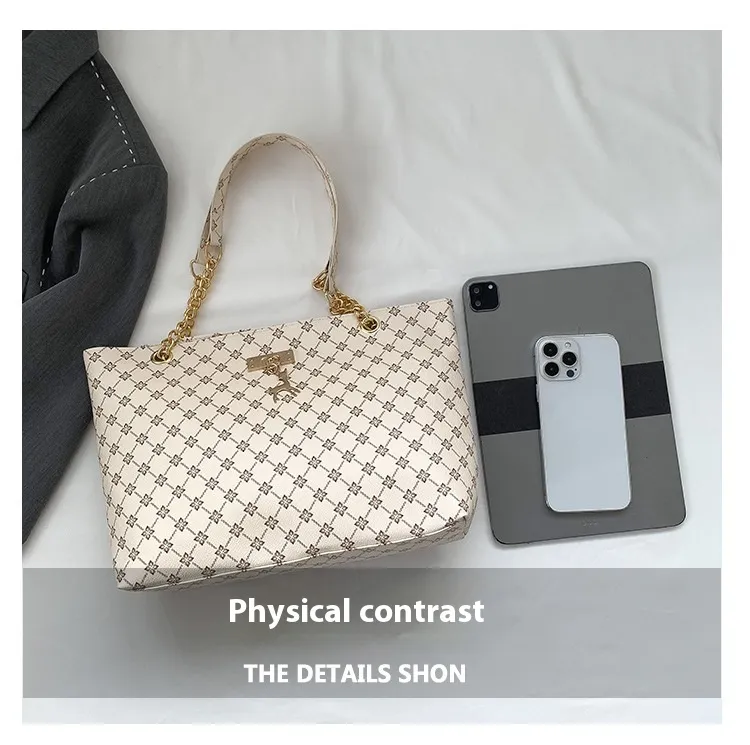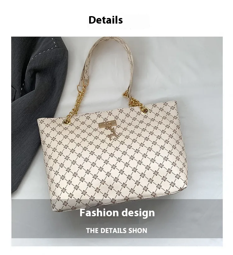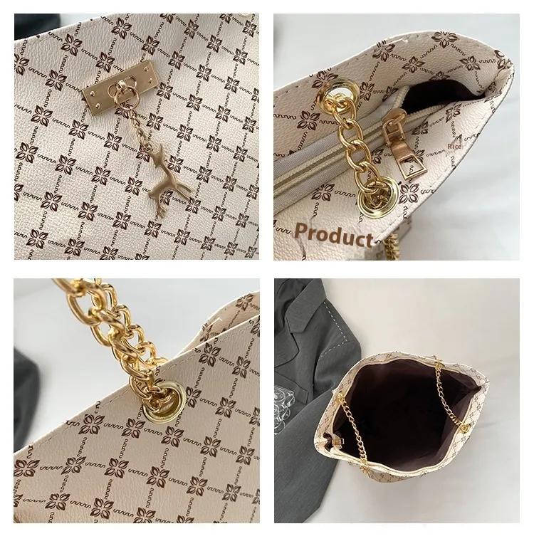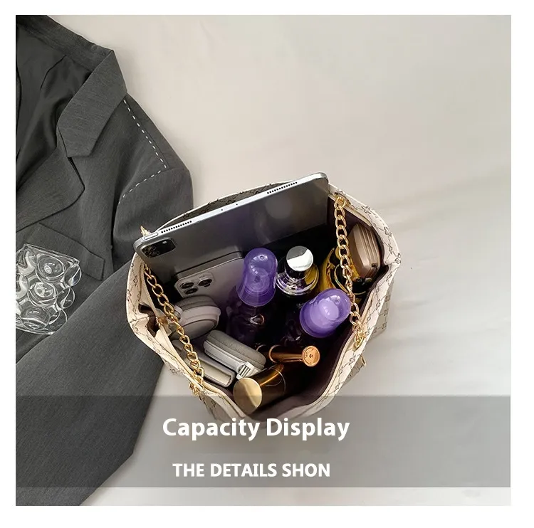 The chain shoulder strap adds a sleek, luxurious touch to the bag, giving it a chic, elegant look that works well for both day and evening wear. The chain is designed to sit comfortably on the shoulder, allowing for easy hands-free carrying, whether you're shopping, commuting, or simply enjoying your day out.