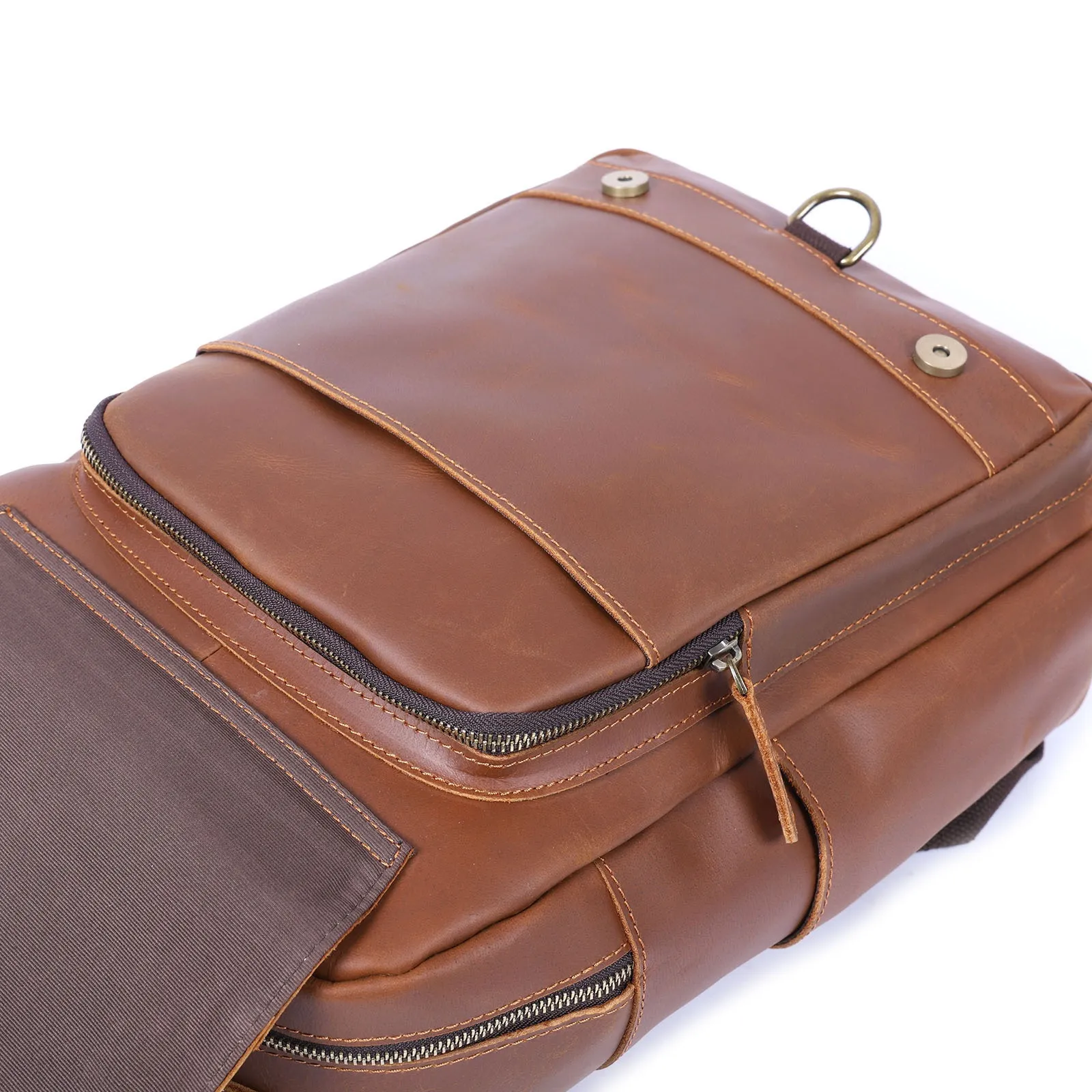 Whether you're headed to work, school, or on a weekend adventure, the Retro Crazy Horse Leather Backpack complements any outfit. Its sophisticated yet rugged appearance makes it suitable for both casual and business settings. In addition to its practical features, this backpack makes a fashion statement, embodying a blend of elegance and adventure.