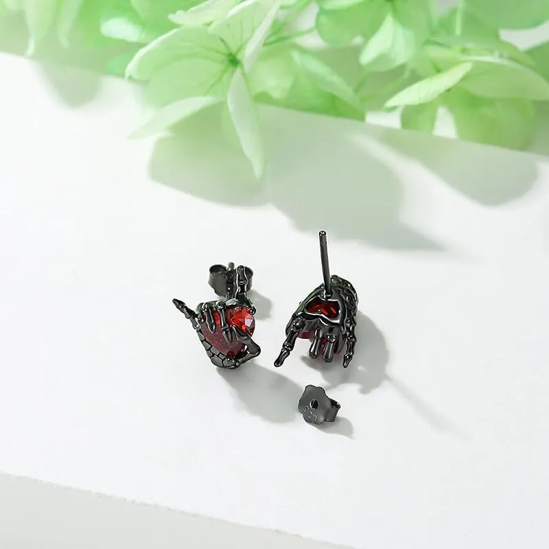 Retro Dark Series Ghost Hand Gesture Than Heart Diamond Stud Earrings