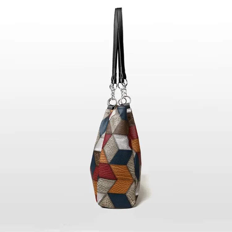 Retro Geometric Pattern Color-Matching Shoulder Bag – Fashion Large Capacity Stitching Handbag for Women Totes