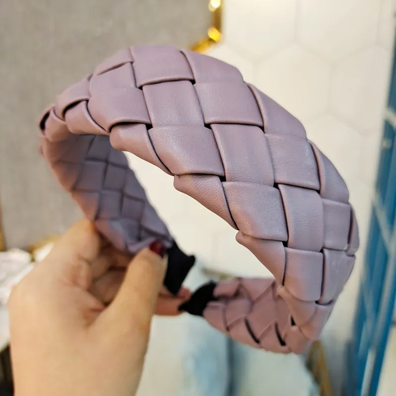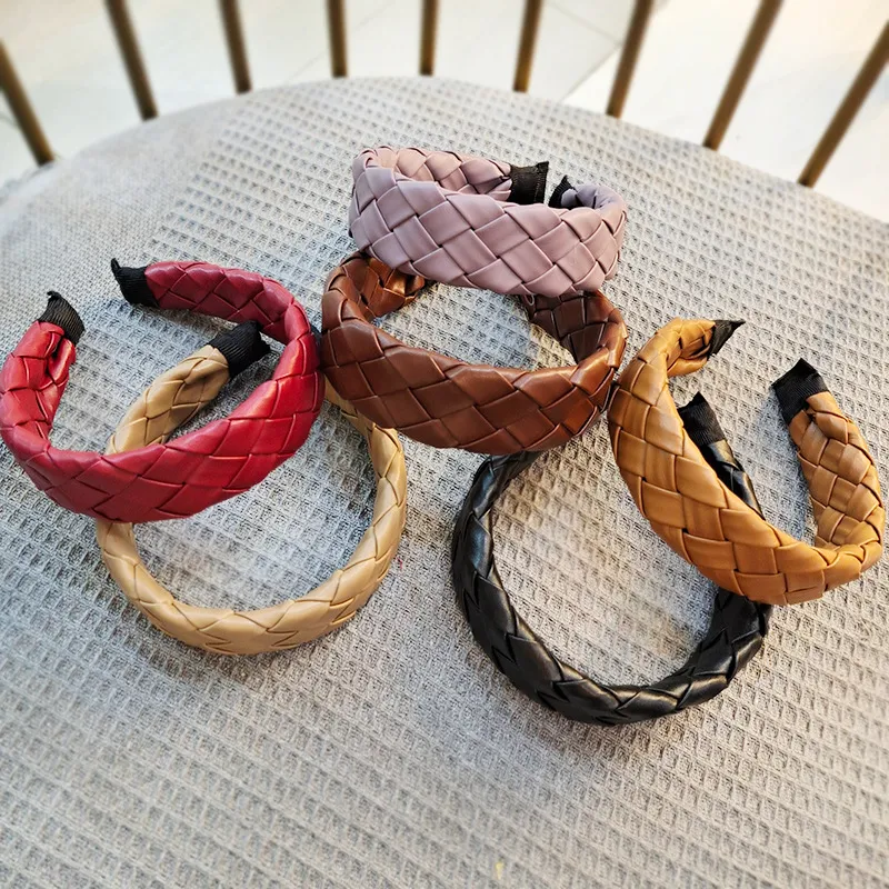 Retro Hong Kong Style Temperament Headband High-end Woven PU Leather Hairpin