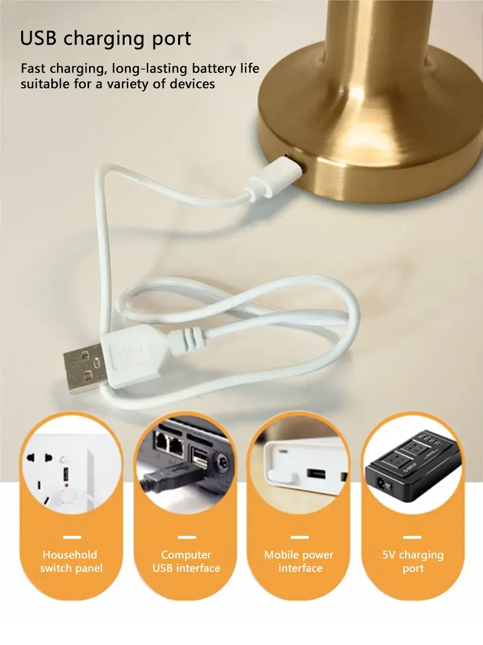 This table lamp offers versatile lighting solutions with its touch dimmable feature and rechargeable battery. The adjustable brightness settings allow you to customize the lighting to suit your mood or activity, whether you're reading, relaxing, or entertaining guests. The touch control ensures easy operation, enabling you to adjust the brightness with a simple tap. The rechargeable battery provides a cordless and portable lighting option, making it easy to move the lamp around your home or business.