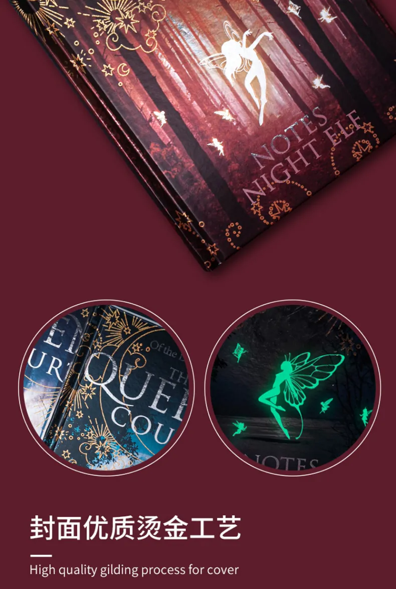 Retro Luminous A5 Notebooks Night Elves,Hardcover Fluorescence Full Color Illustrated Notepad,128 Sheets Book,Office Study Diary