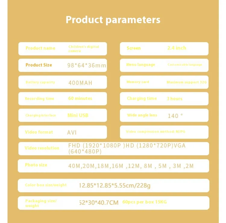 The Retro Photography Camera comes with expandable memory, allowing users to store hundreds of photos and videos. Whether capturing memories during family outings, birthday parties, or school events, the camera’s memory space is perfect for saving content until it's time to transfer it to a computer or another device.