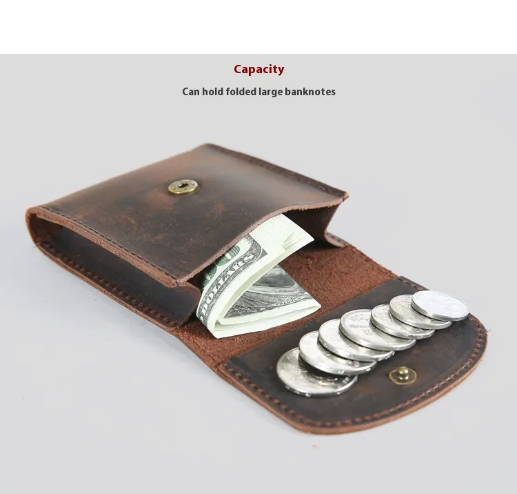 Despite its mini size, our Retro Simple Cowhide Coin Change Mini Wallet features ample space for coins, folded notes, and small essentials. The secure closure keeps your belongings safe, making it a reliable companion for everyday use.