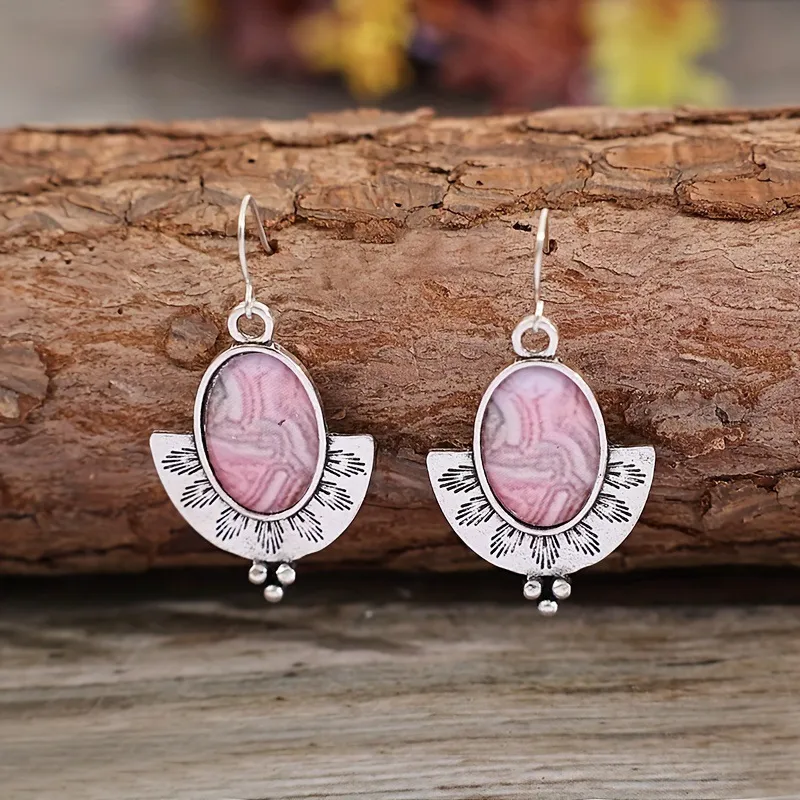 Retro Style Semicircle Fan-shaped Alloy Oval Earrings