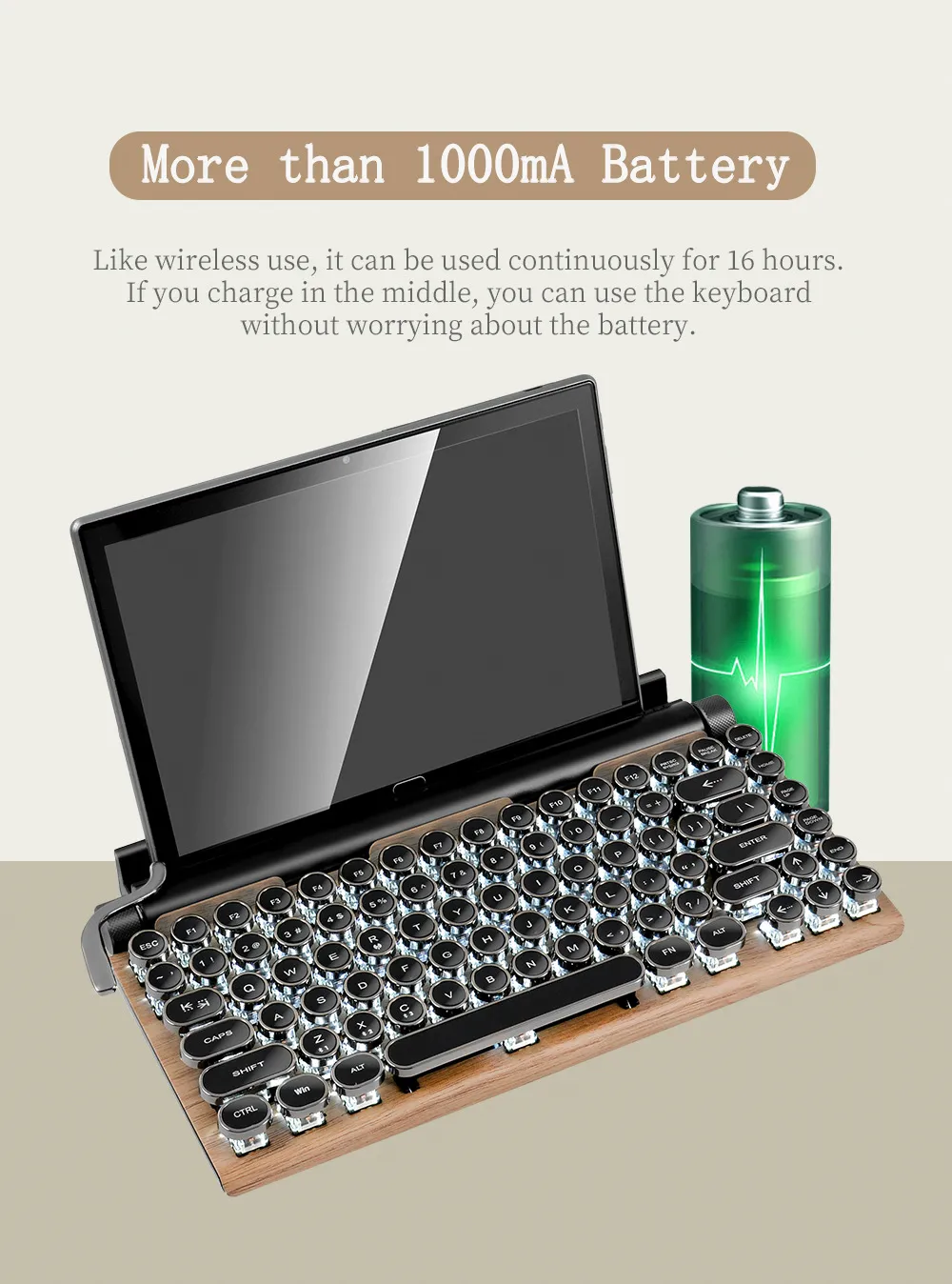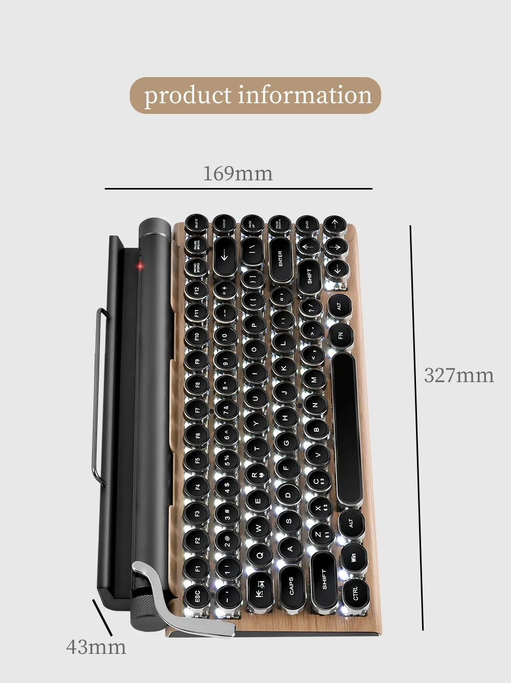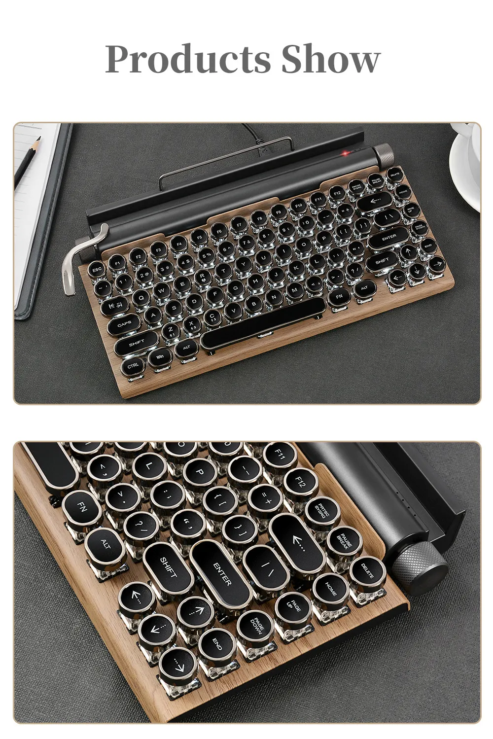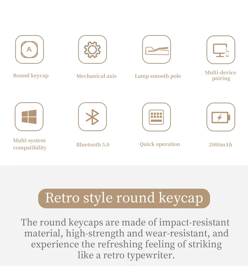 This keyboard brings back the timeless elegance of vintage typewriters with: