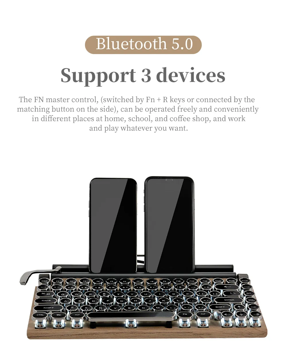 Perfect for writers, retro lovers, professionals, and gamers, this Bluetooth mechanical keyboard brings the best of old and new technology together.