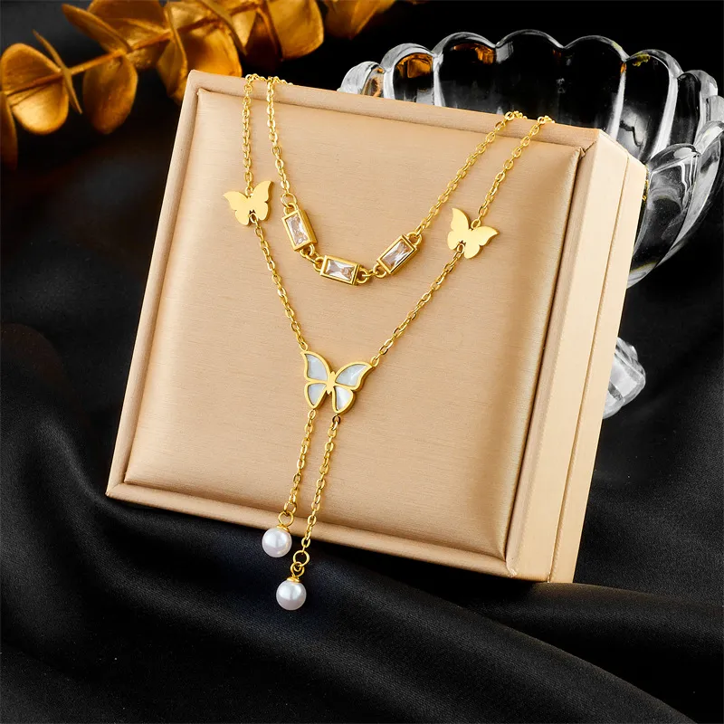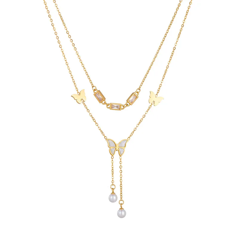 Retro Women's Butterfly Tassel Double-layer Necklace