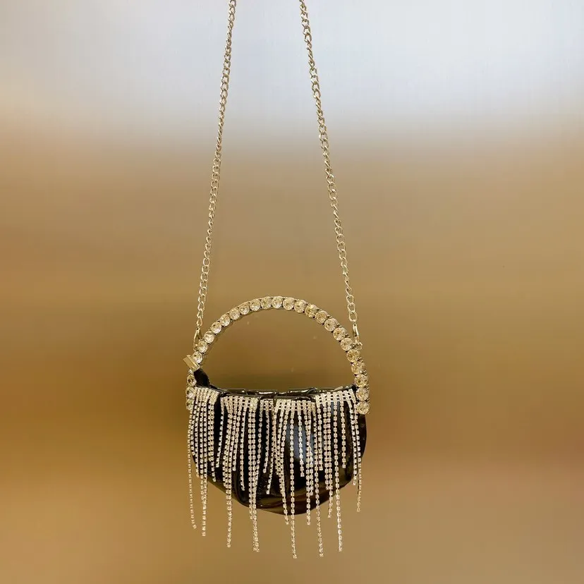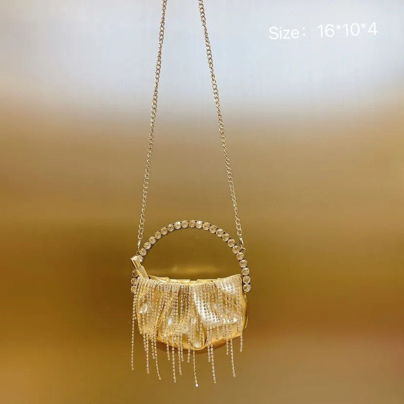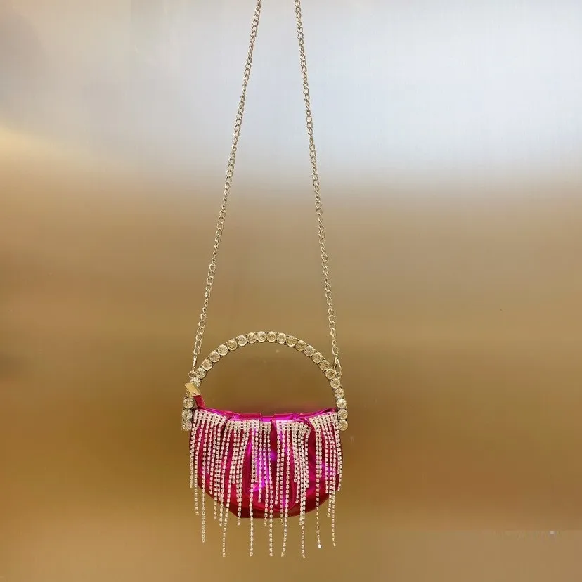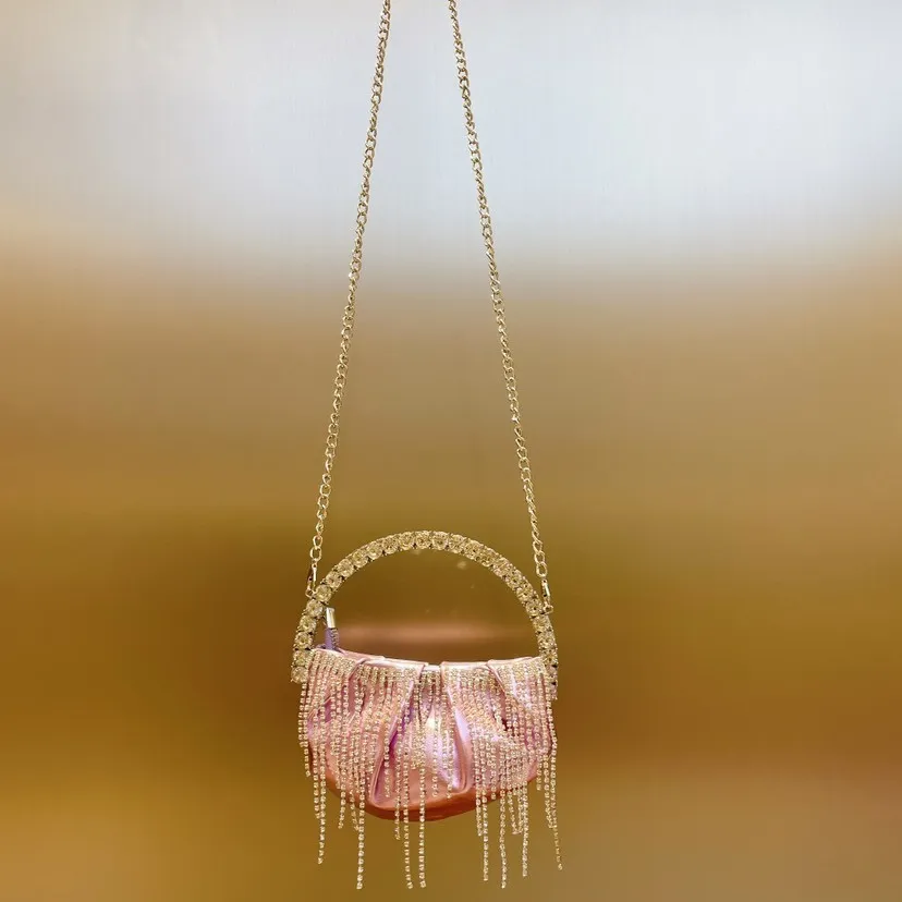 Rhinestone Tassel Pleated Mini Shoulder Messenger Bag