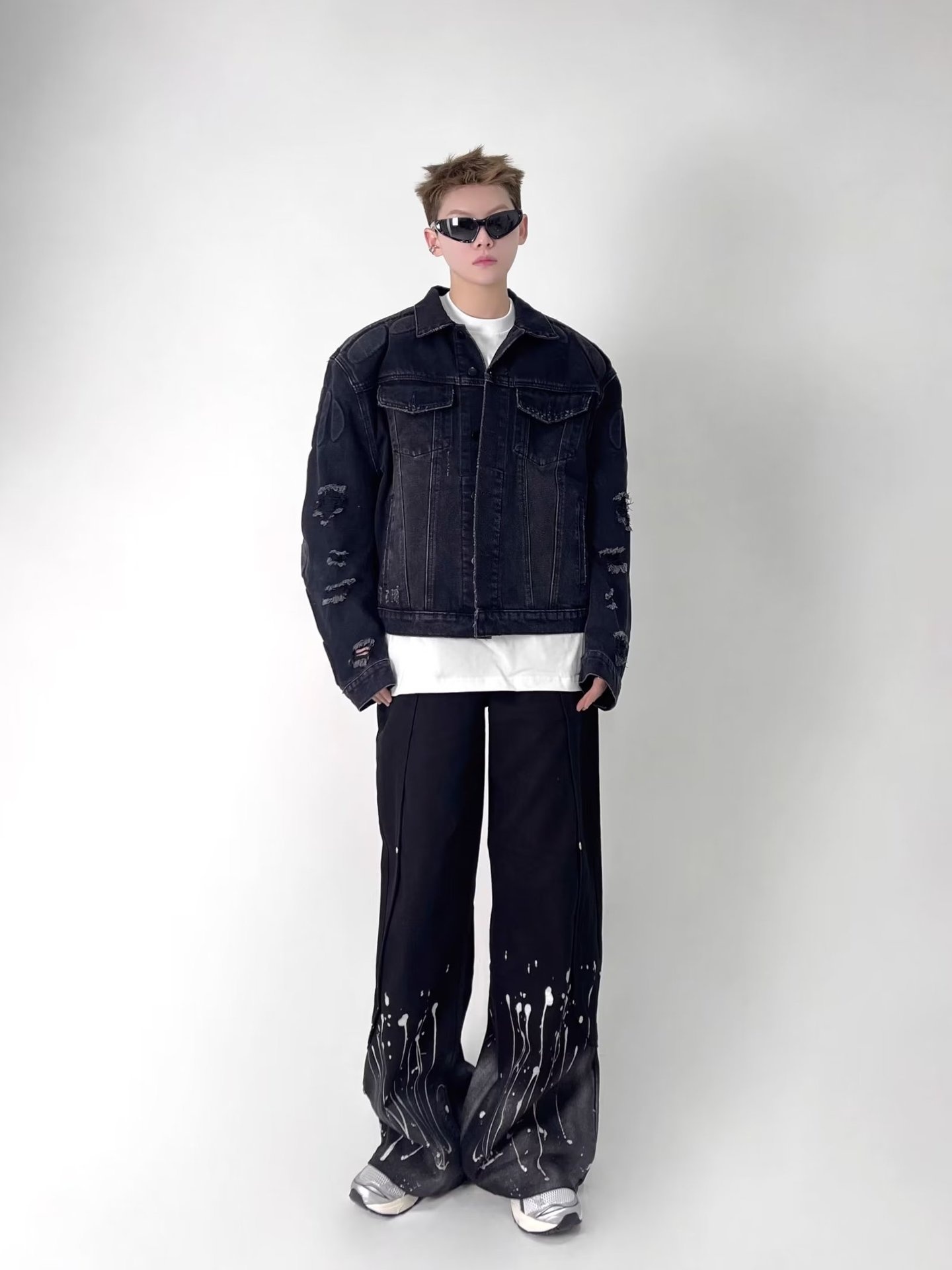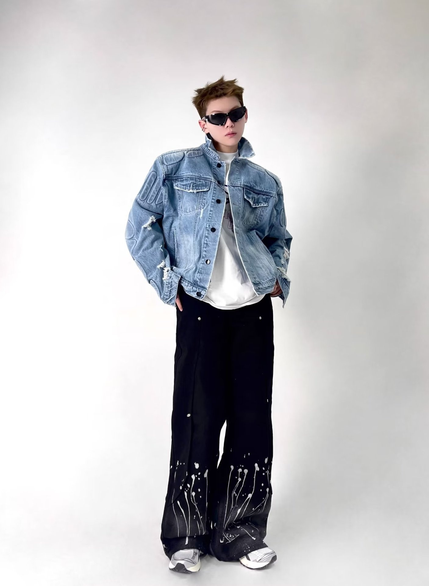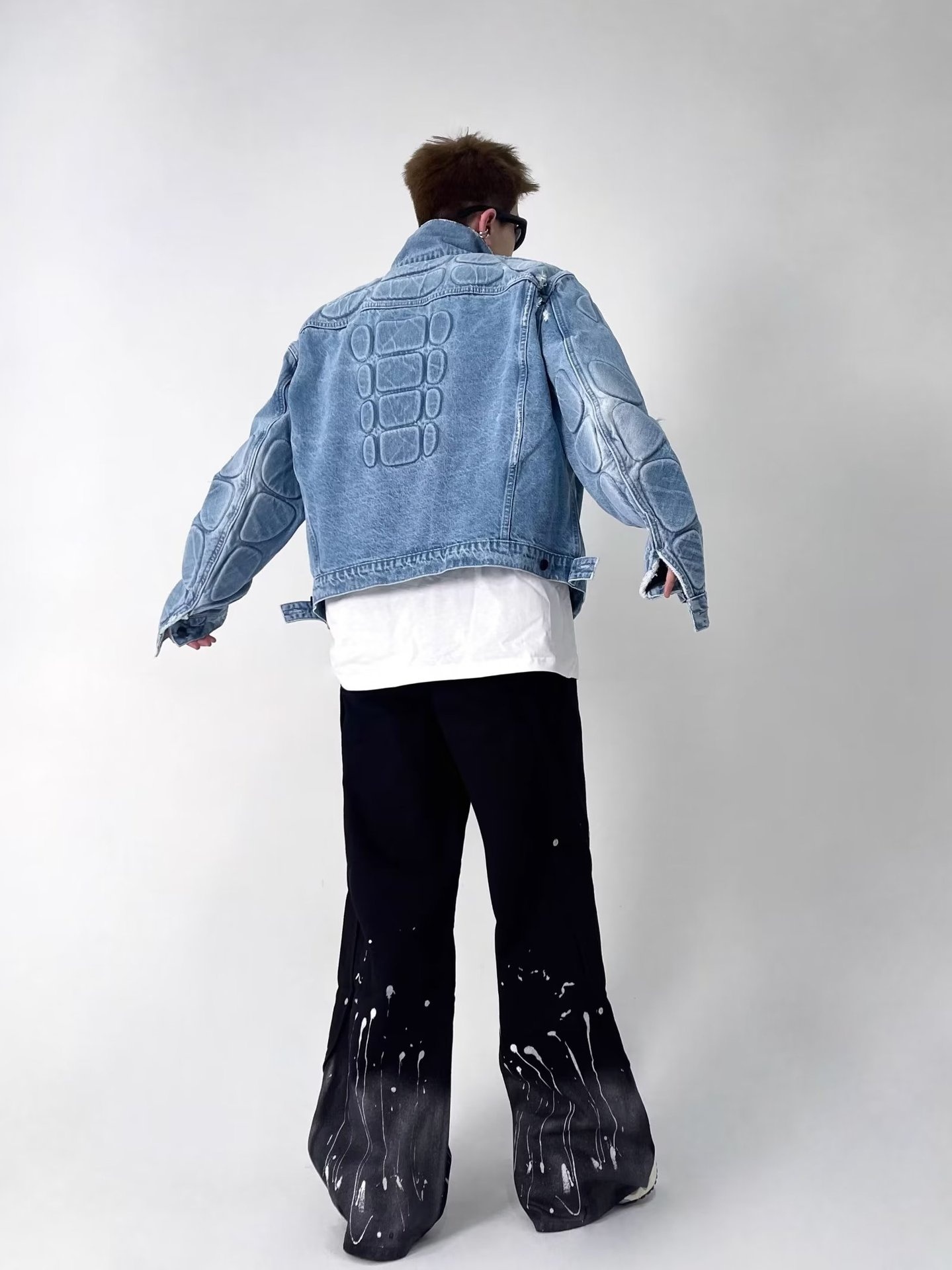 Men's Leopard Ombre Print Denim Trucker Jacket