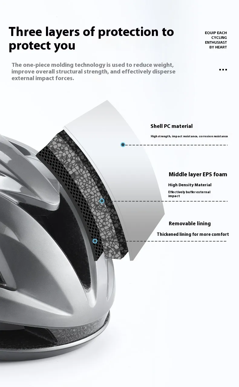 Our integrated safety helmet is engineered to offer high-impact resistance while maintaining a lightweight, aerodynamic profile. Whether you're cycling through urban streets or countryside roads, this helmet provides superior protection.