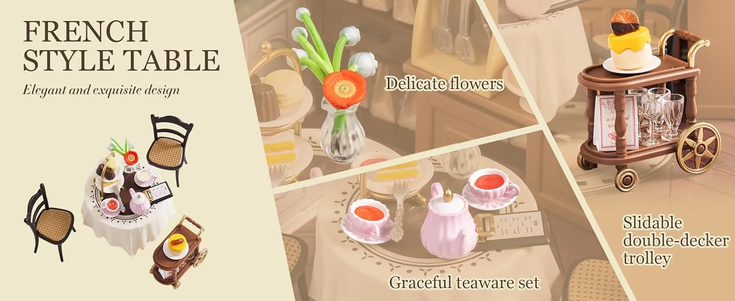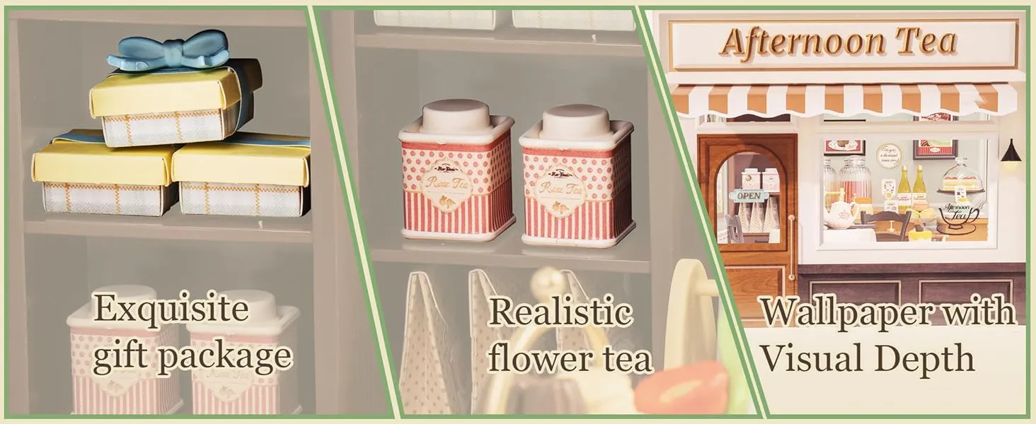 - Product Name: ROBOTIME DIY Miniature Dollhouse Kits Sweet Sips Tea Craft Kit for Xmas Gifts