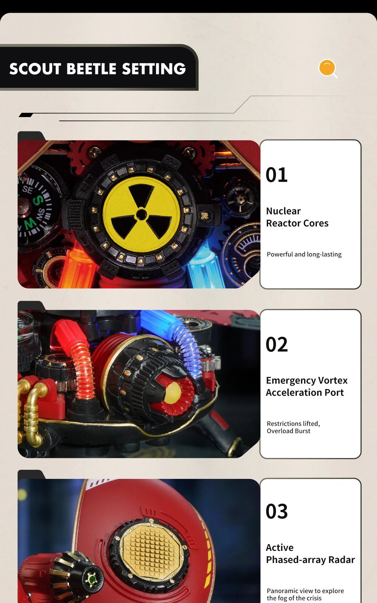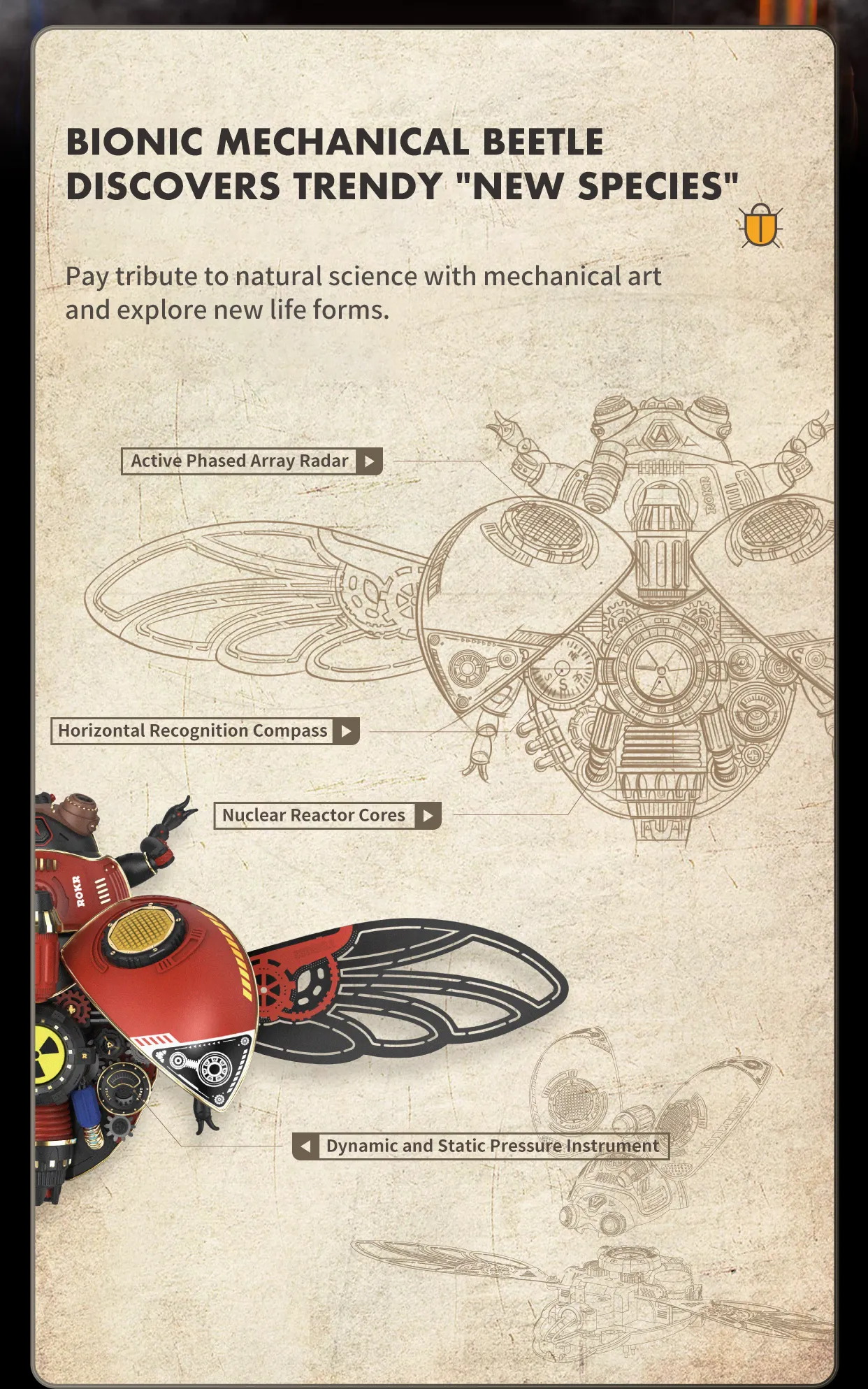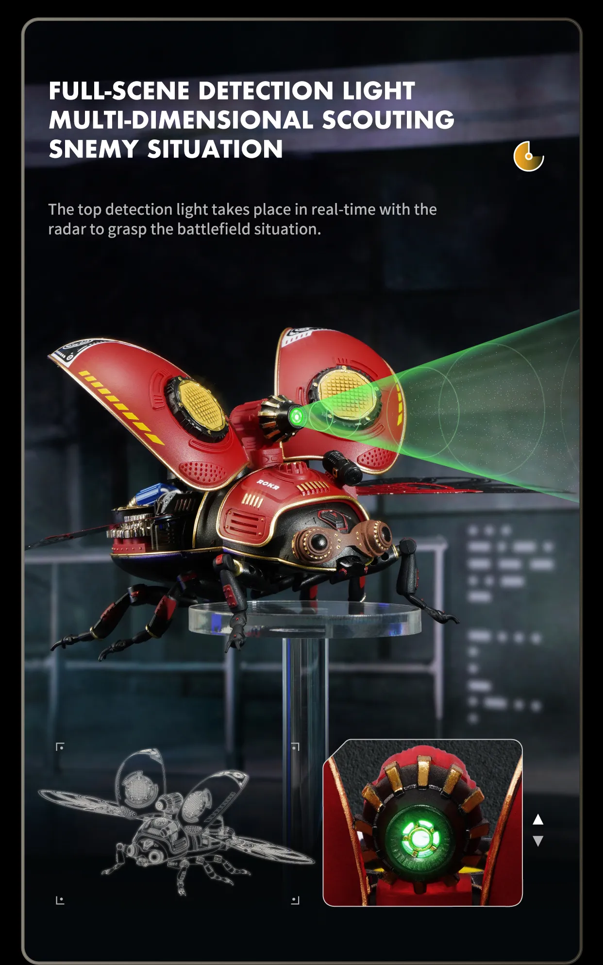 1. This "Scout Beetle" is assembled by the card tenon, the overall appearance of the preferred low-pressure cold spraying process, the body wall, front fins in red (a bit like a seven-star ladybug), looks hard texture.