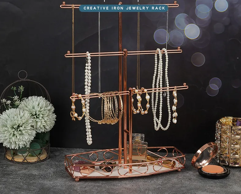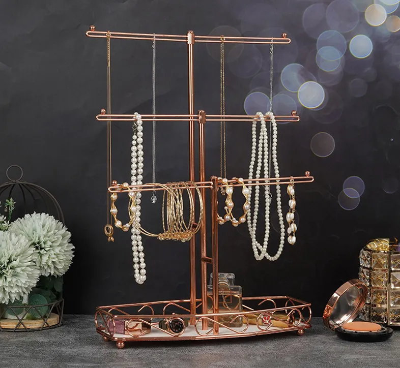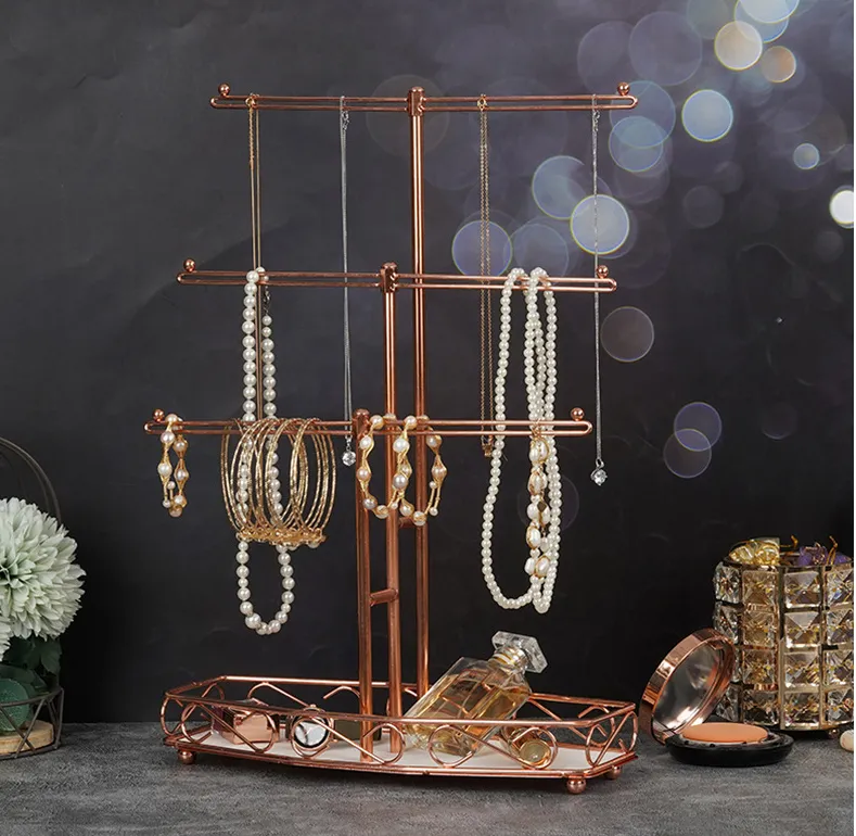 Rose Gold 3-Tier T-shaped Jewelry Display Storage Rack