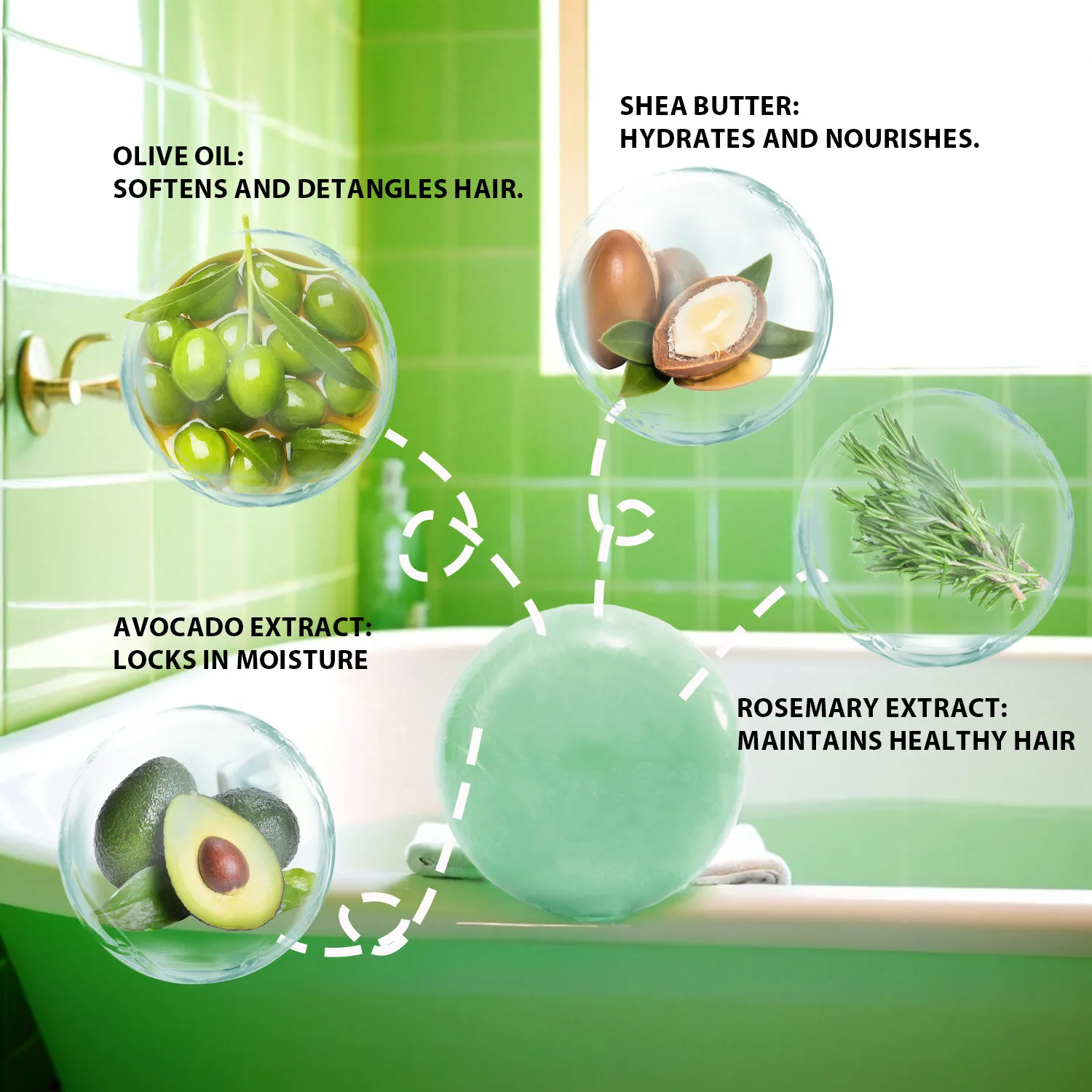 This unique shampoo soap harnesses the power of rosemary and other beneficial ingredients:
