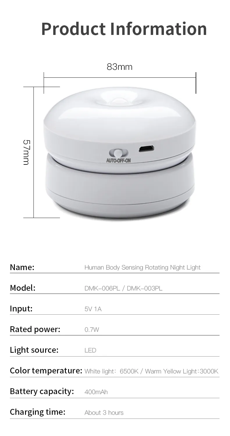 Rotating Human Body Sensor Light Corridor Garage Light Wardrobe Light Motion Sensor Night Light