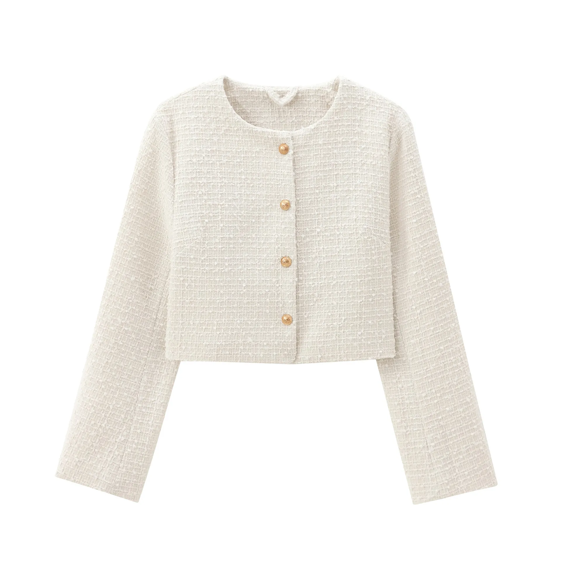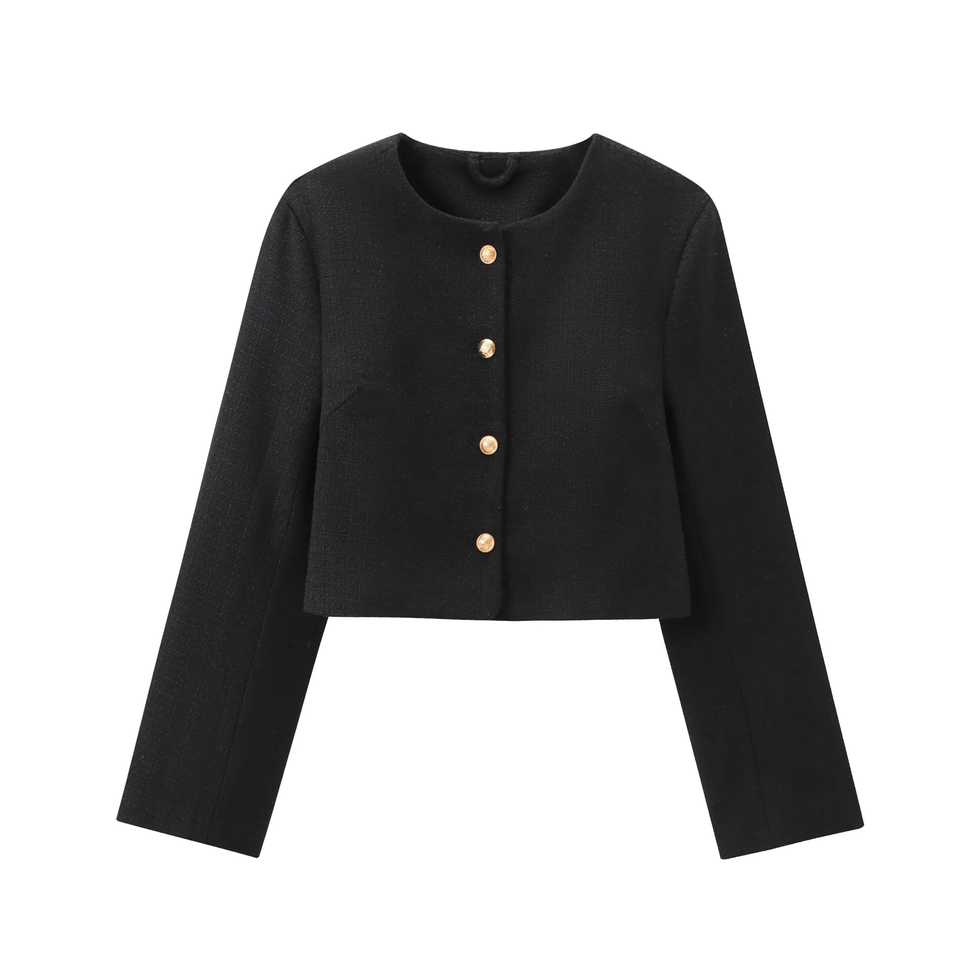 Why Choose the Round Neck Single-Breasted Velvet Short Coat?