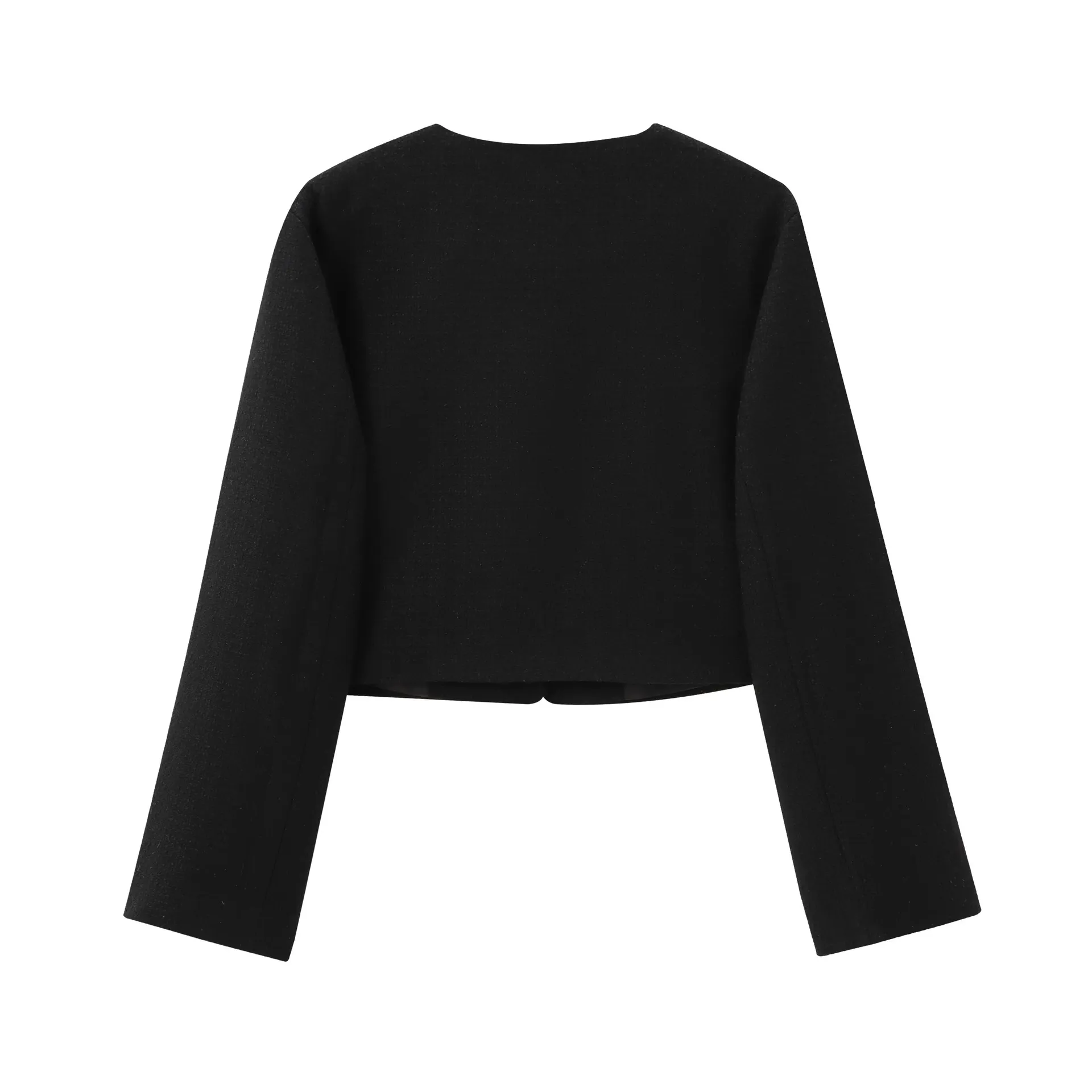 The beauty of the Round Neck Single-Breasted Velvet Short Coat lies in its versatility. Its solid color design makes it easy to pair with almost any outfit, whether you’re dressing up for a formal event or dressing down for a casual outing. Here are a few ways to style it: