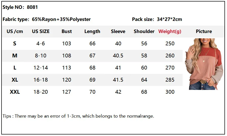 The Round Neck Twist Strip Color Matching Long Sleeve Loose T-shirt for women combines style and comfort effortlessly. Crafted from a soft blend of 65% Rayon and 35% Polyester, this top is designed to offer a lightweight and breathable feel, making it ideal for year-round wear. The round neck design enhances its versatility, allowing it to be easily paired with various accessories or layered under jackets for a complete look.