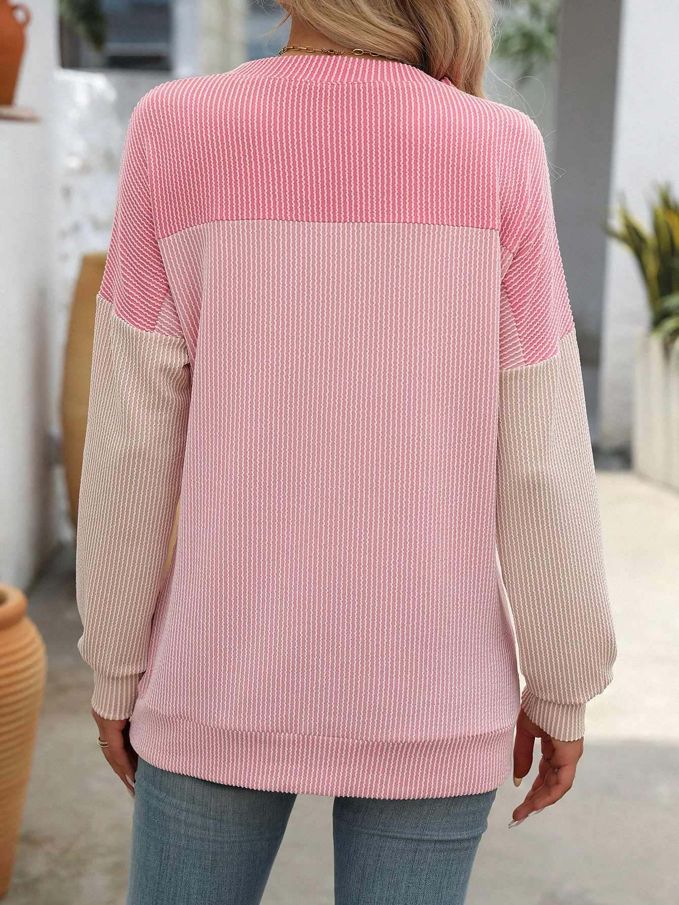 Round Neck Twist Strip Long Sleeve Loose T-shirt For Women